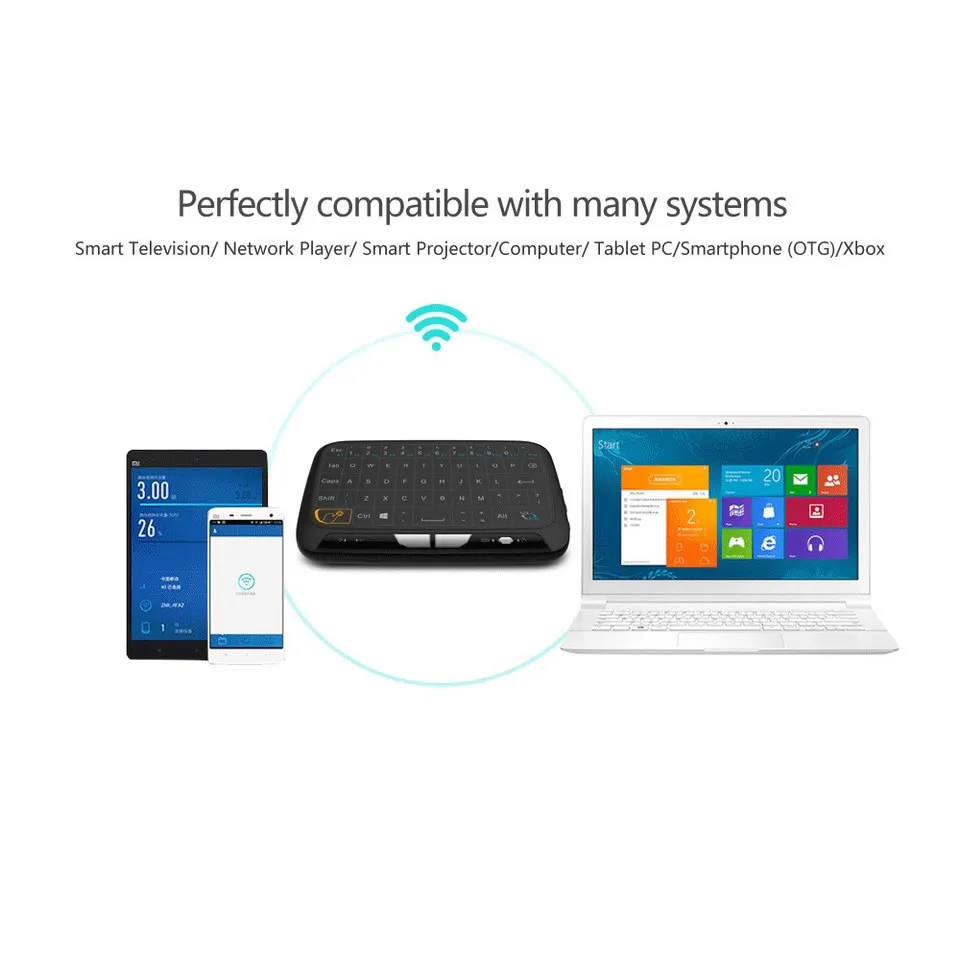 Comprar Mini teclado inalámbrico H18 + Air Mouse, pantalla táctil, 2,4 GHz, teclado QWERTY, panel táctil con función de retroiluminación para Smart TV PS3