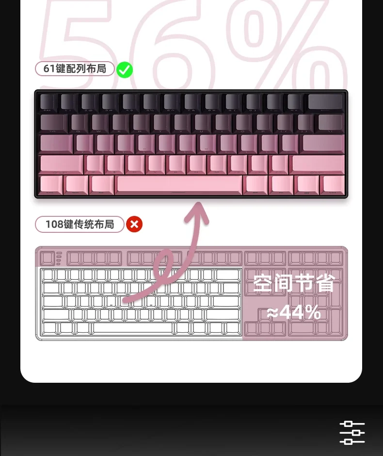 61 key streamlined layout saves space