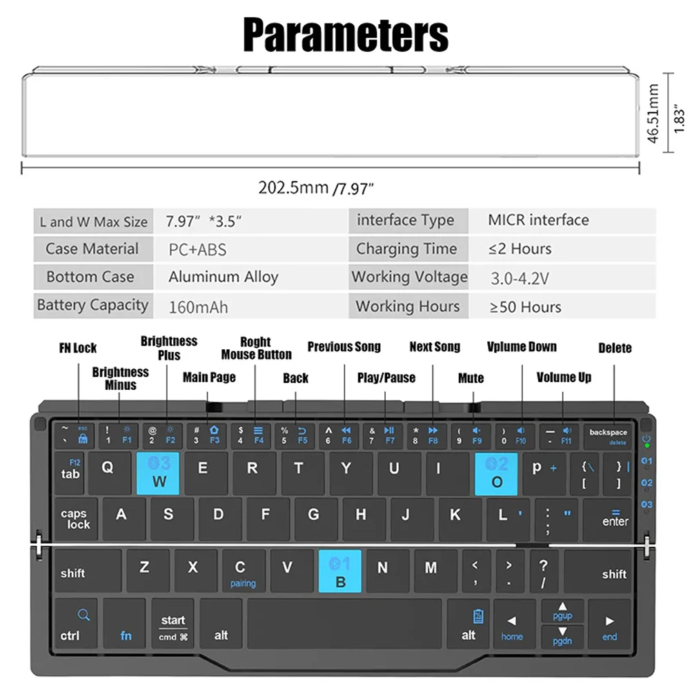 【Teclado plegable compatible con Bluetooth】iOS/Windows/Android/ Mac OS/HMS mini Teclado plegable Bluetooth es perfectamente compatible con los sistemas operativos iOS, Android y Windows para teléfonos móviles, tabletas, ordenadores portátiles, ordenadores de escritorio, y proporciona una conectividad Bluetooth estable y rápida. Con solo un toque, el teclado Bluetooth plegable puede cambiar instantáneamente entre dispositivos registrados con teclas de estructura de pie de tijera, fácil de presionar sin preocuparse por daños.