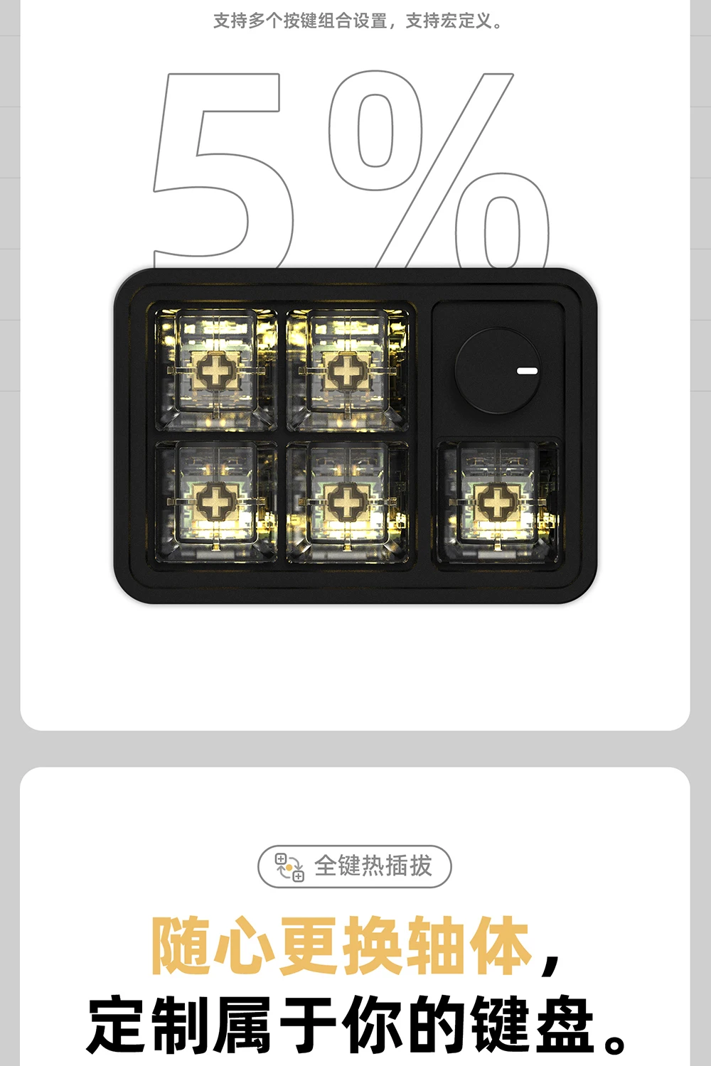 1.Personalización completa de teclas, intercambio en caliente de teclas completas