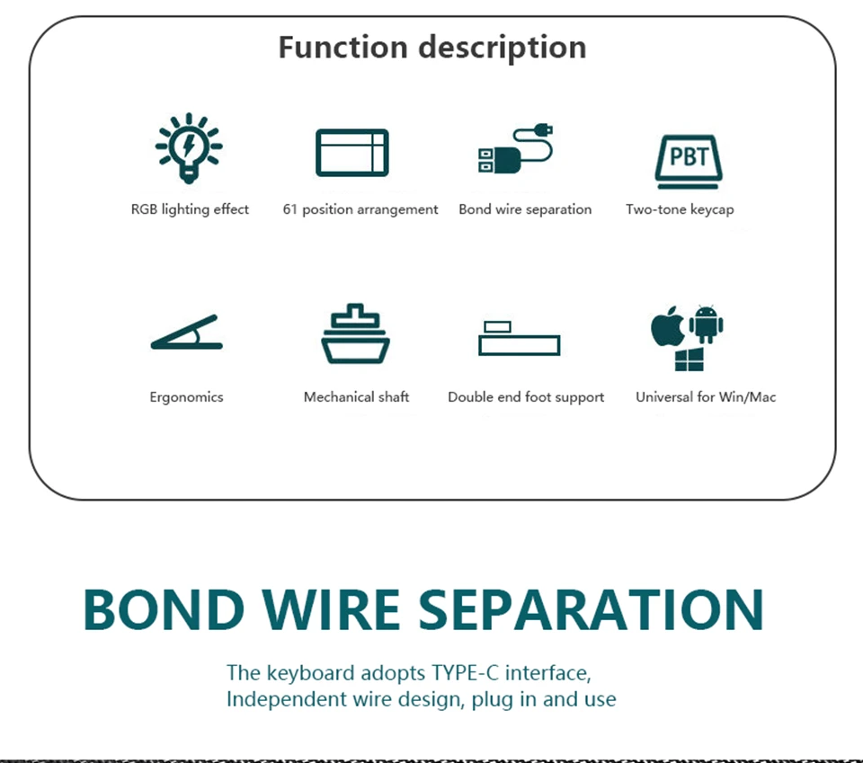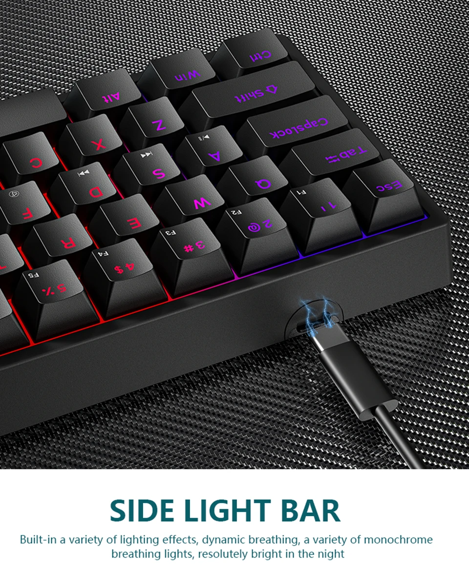 Teclado mecánico de separación de líneas de teclas RGB de 61 teclas