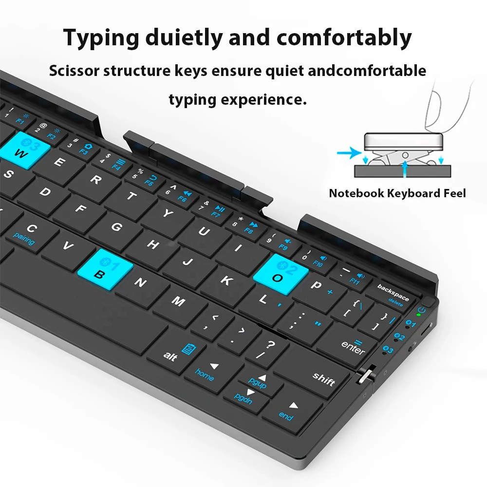 Teclado plegable Teclado inalámbrico Bluetooth compatible con 3 dispositivos con soporte Teclado recargable
