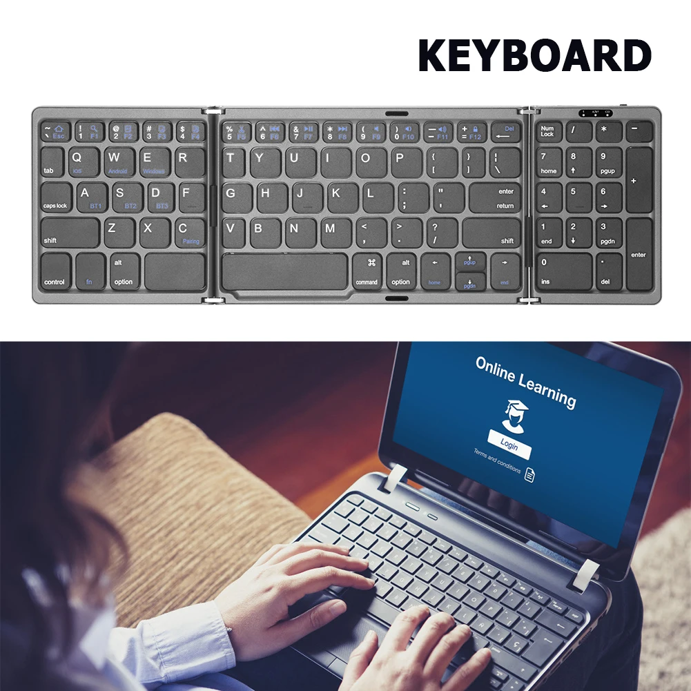 Feature: 1. Ultra-thin size: the thinnest thickness when unfolded is only 0.986cm.Easy to carry, easy to travel and low burden: the three fold size is smaller, easy to put into the bag pocket 2. With digital area: With digital area, you can enjoy a comfortable office experience 3. Excellent hand feel, easy and effortless: use self-developed scissors foot keys to create a comfortable mute keyboard 4. Adopt Broadcom Bluetooth-Compatible chip imported from the United States: the Bluetooth-Compatible connection is more stable and the compatibility of devices is better.Concealed shaft structure: concealed structure design is beautiful and atmospheric, and will not interfere with normal typing 5. Rich multimedia functions: usage IOS/Android system: Fn+corresponding functions Windows system Fn+Shift+corresponding functions; Support Windows, Android and IOS systems: support mobile phones, tablets and notebooks with Bluetooth-compatible function, easy to use. Specification: Certification: CE,FCC Origin: Mainland China Style: Folding Package: Yes Model: B089 Material process: ABS fuel injection Connection mode: Bluetooth-Compatible Battery: 140mAh lithium battery Charging interface: Type-C Number of key caps: 81 keys Key structure: scissors feet Key layout: English System support: Win/Android/iOS/OS/HMS Working current of typing: < 3mAh Sleep time: 10min/< 20 μ A Service life: 45h Standby time: 90 days Key operation life: 3 million cycles Keyboard weight: 220g Keyboard size: open: 304.31x98.12x9.86mm/11.9*3.85*0.38in, fold: 152 x 98.12x19.83mm/6x3.85x0.8in Package weight: 275g Package size: 186 * 122 * 24mm/7.3*4.8*0.94in Color: black, silver, grey Note: Due to the different monitor and light effect, the actual color of the item might be slightly different from the color showed on the pictures. Thank you! Please allow 1-2cm measuring deviation due to manual measurement. 1 x Charging Cable 1 x Instructions ![]() ![]() ![]() ![]() ![]() ![]() ![]() ![]() ![]() ![]() ![]() ![]() ![]() ![]() ![]() ![]() ![]() ![]() ![]() ![]() |