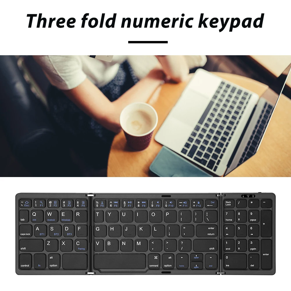 Comprar Mini teclado plegable portátil, teclado inalámbrico Bluetooth con teclado numérico para Mac, Windows, Android, IOS, portátil y tableta