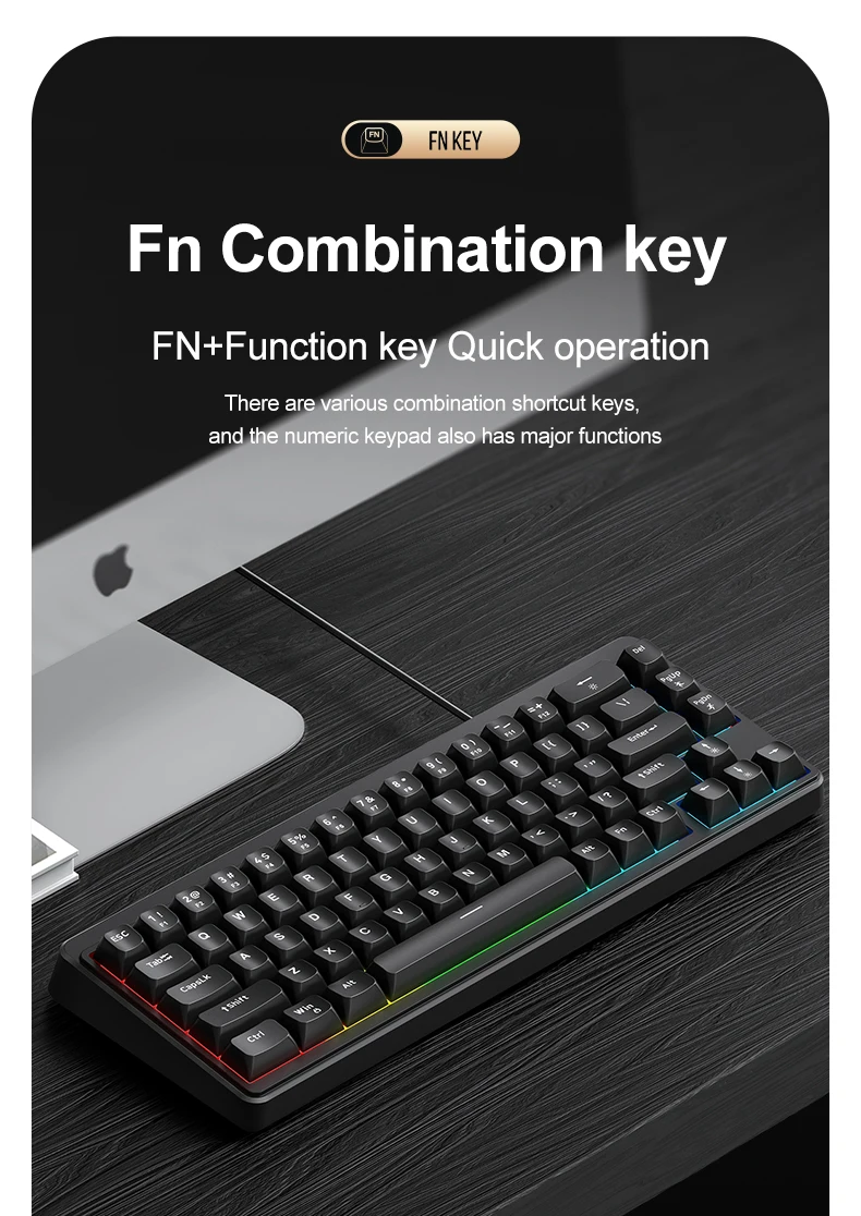 ✔ Diseño 60% que ahorra espacio – 67 teclas con teclas de flecha dedicadas para funcionalidad en un tamaño mínimo.