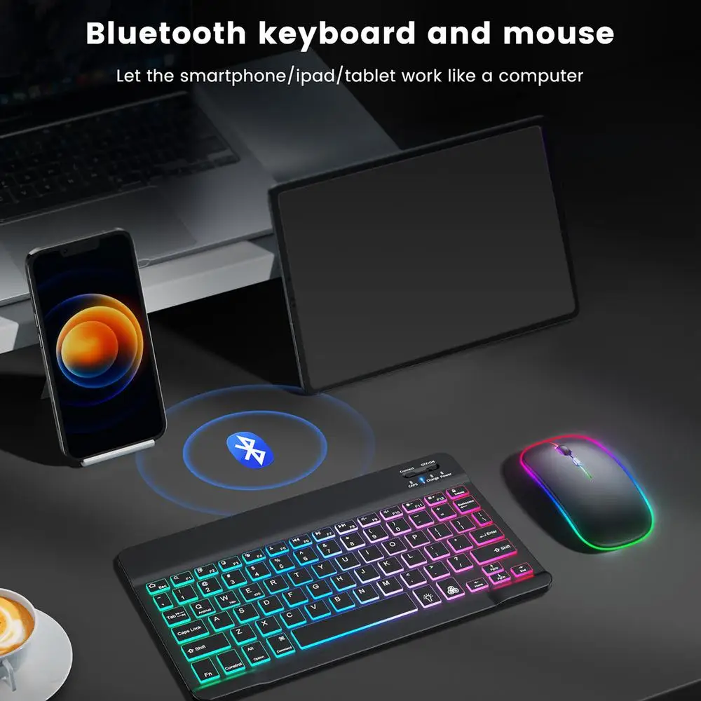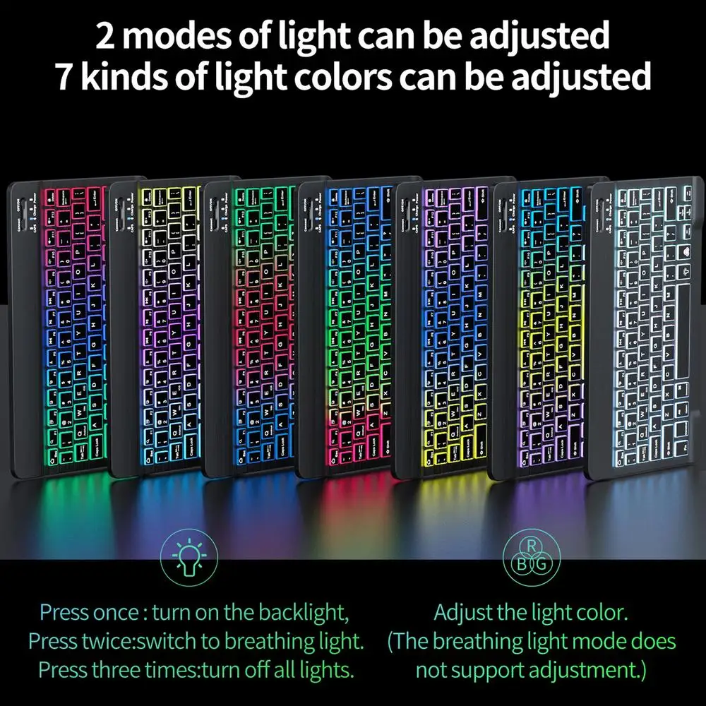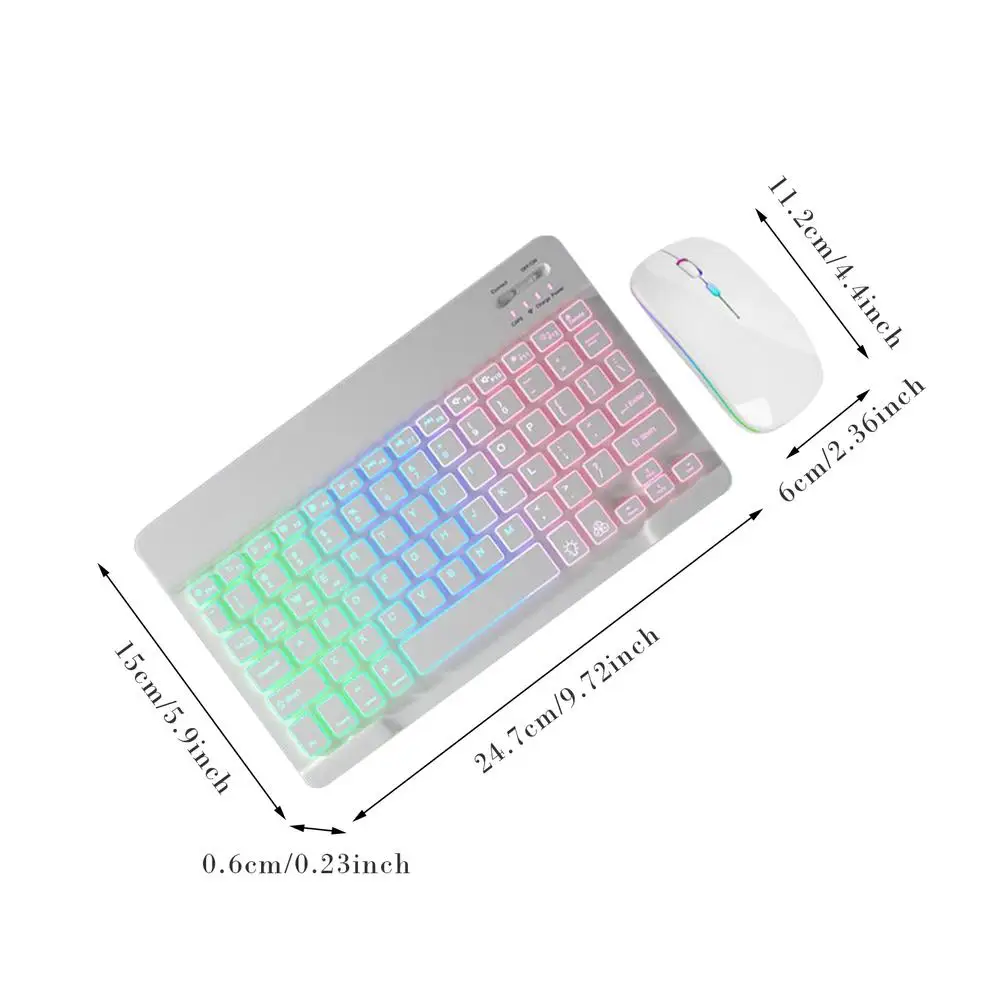 Mini teclado y monodosis, juego retroiluminado, inalámbrico, Bluetooth, 7 colores, tablero de teclado degradado con 2 modos de luz, kit de teclado de ordenador