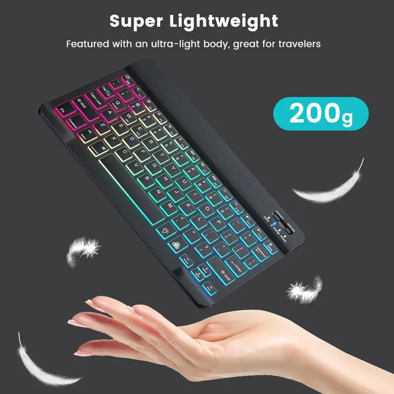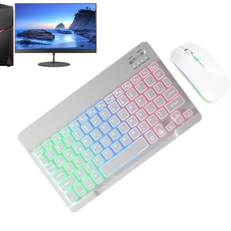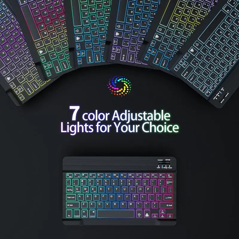 Mini teclado y monodosis, juego retroiluminado, inalámbrico, Bluetooth, 7 colores, tablero de teclado degradado con 2 modos de luz, kit de teclado de ordenador