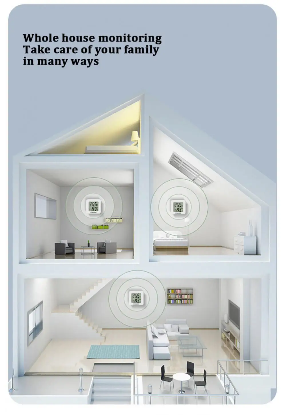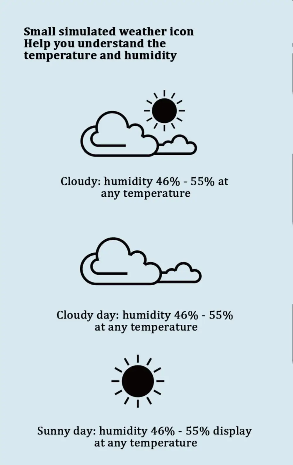 Indicador de confort del aire: los iconos de nivel indican el confort del aire, ideal para controlar las condiciones de vida y la salud de la familia.