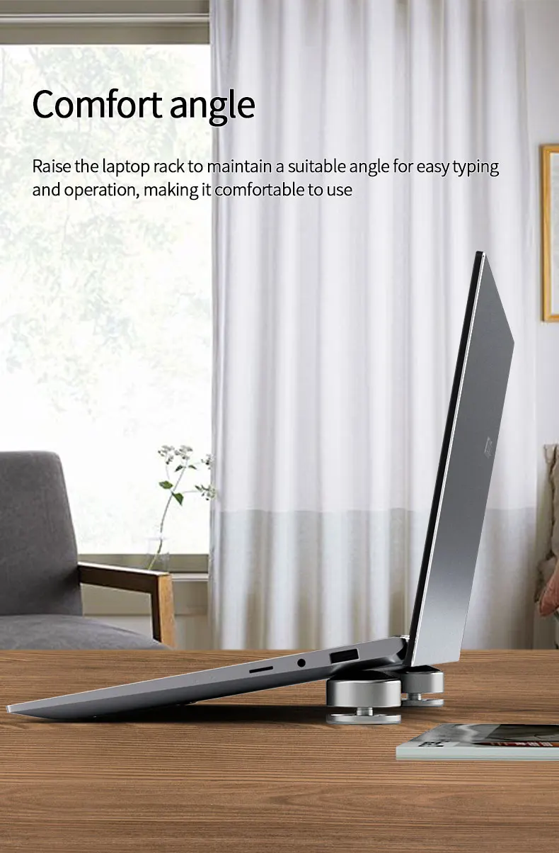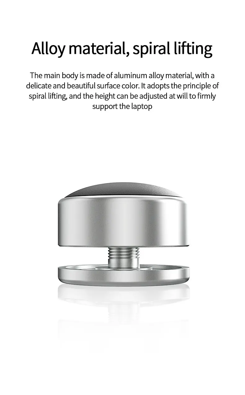 El Cuerpo principal está hecho de material de aleación de aluminio, con un color de superficie delicado y hermoso. Adopta el principio de elevación en espiral, y la altura se puede ajustar a voluntad para apoyar firmemente la computadora portátil
