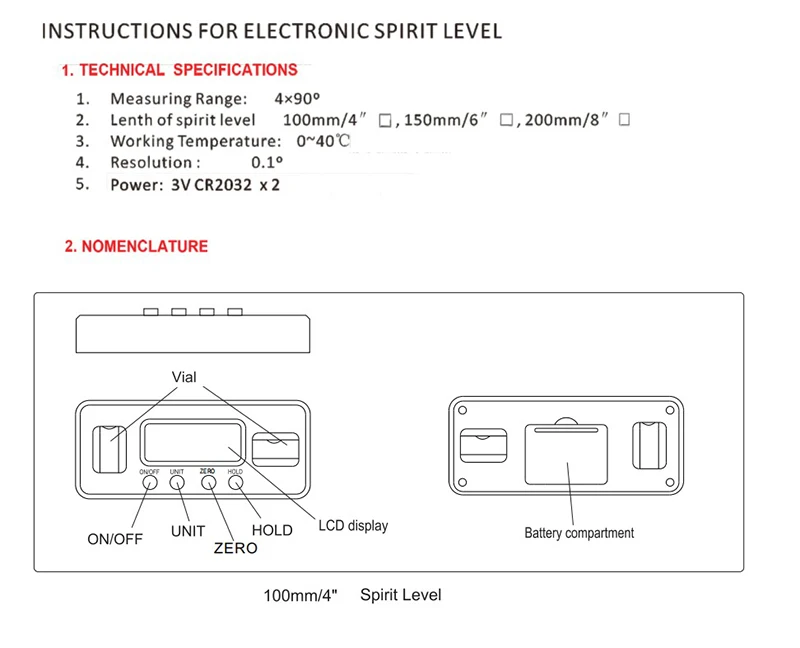 Longitud del nivel de burbuja: 100 mm/4"
