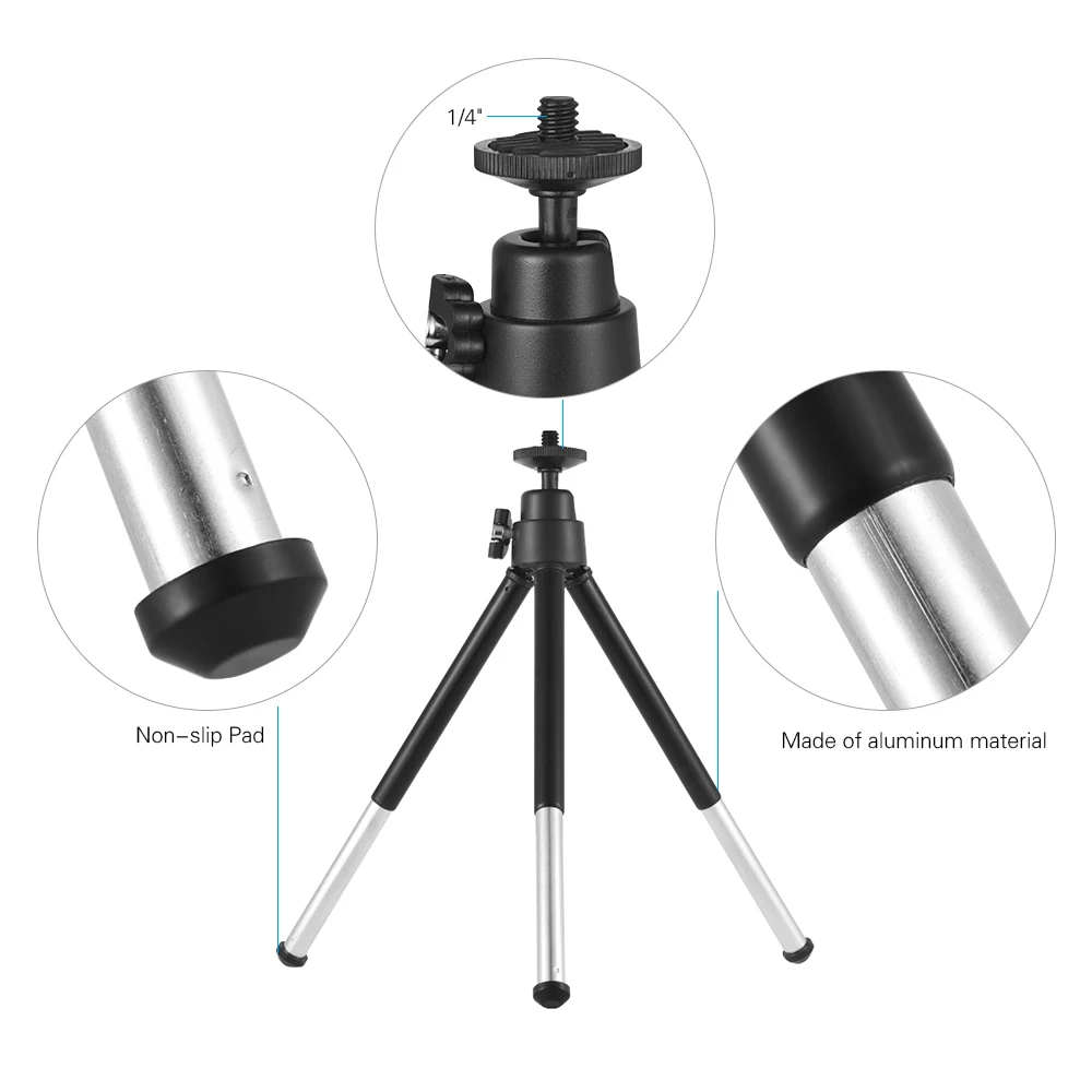 Comprar Mini trípode de escritorio extensible de 2 secciones, soporte de tornillo de 1/4 pulgadas para teléfono ILDC, carga máxima de 0,5 kg, color negro