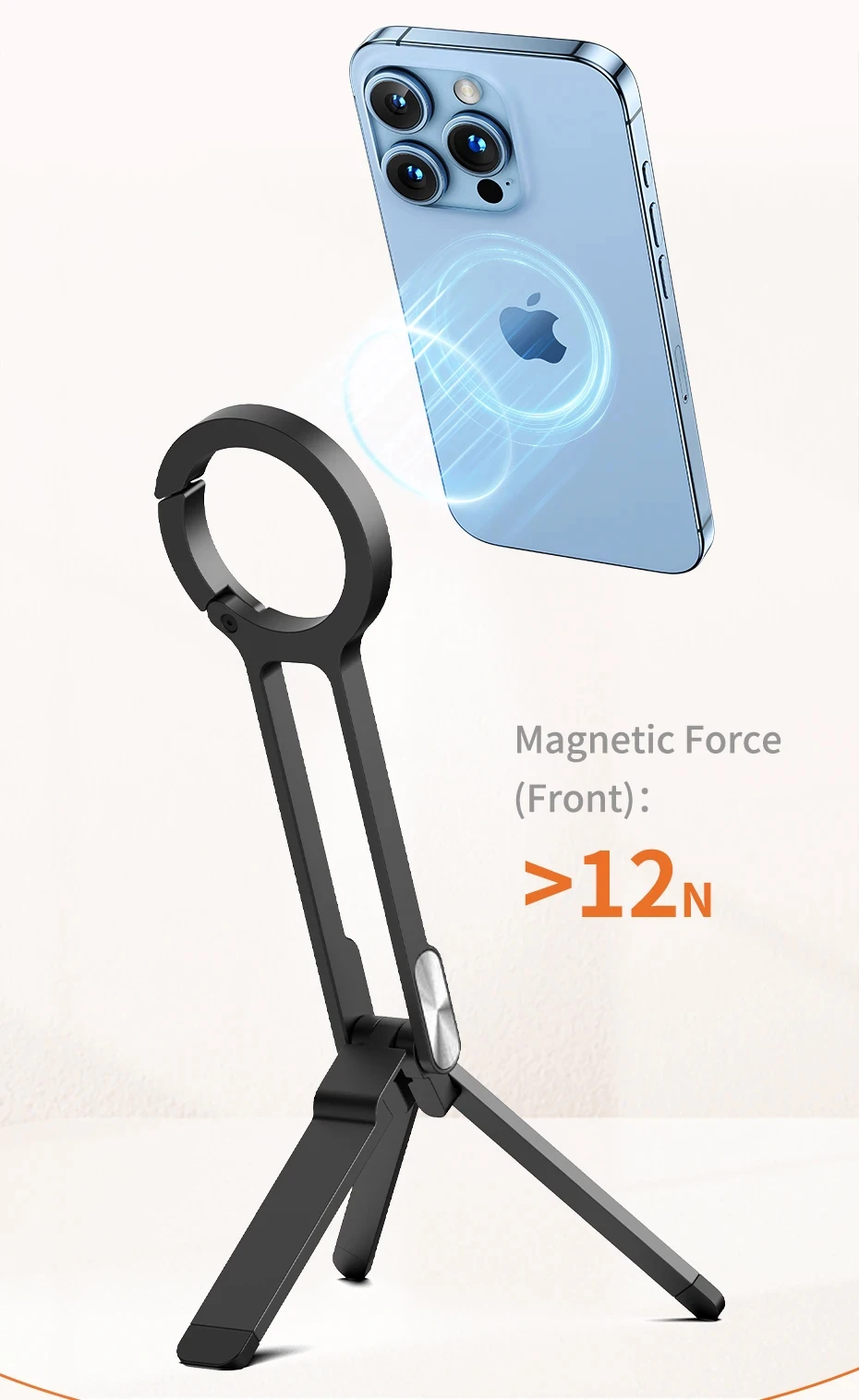Amplia compatibilidad:Este trípode magnético plegable es compatible con los modelos de teléfonos y las fundas de teléfonos MagSafe, así como con adhesivos de anillo magnético.Perfecto para vlogging, fotografía de acción, transmisión en vivo y reuniones en línea, satisface todas sus demandas de fotografía móvil.