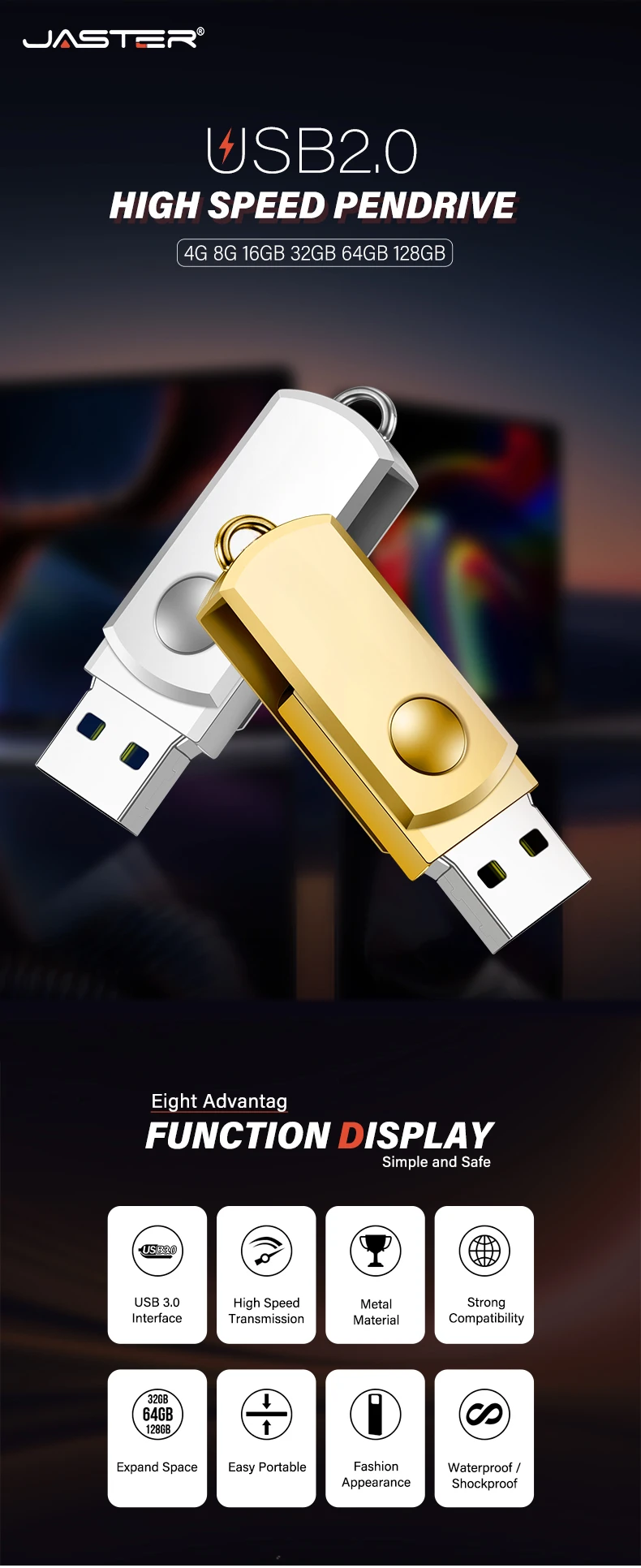 Mini unidad flash USB 2.0, unidad de bolígrafo de Metal creativa, 128GB, 64GB, memoria giratoria, 32GB, dispositivos de almacenamiento de llavero, regalo, 16GB, 8GB, para ordenador portátil, disco U, 4GB, memoria USB