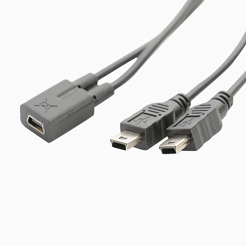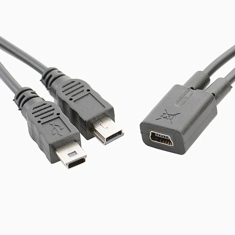 Comprar Mini USB 1 a 2 Y Cable divisor USB 2.0 Mini convertidor hembra de 5 pines a 2 macho 0,3 M