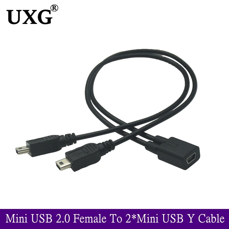 Comprar Mini USB 2,0 hembra a 2 USB Mini USB macho General divisor Y cargador con extensión adaptador de Cable de 30cm Mini Cable divisor USB