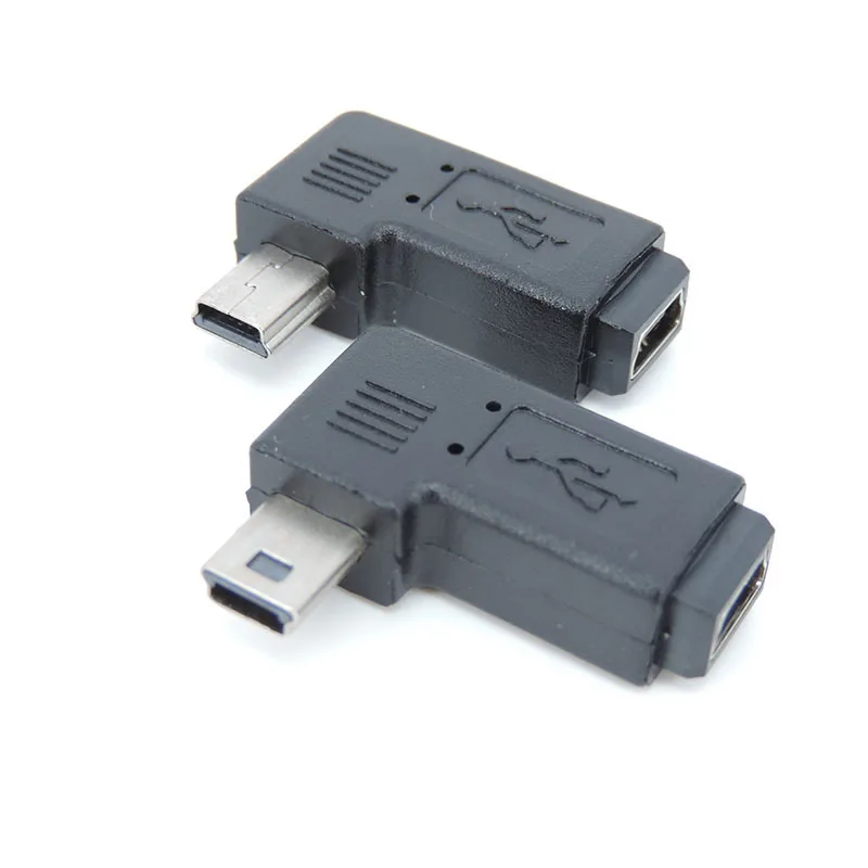 Comprar Mini USB 5 pines codo macho a hembra adaptador de 90 grados M a F ángulo izquierdo y derecho adaptador extendido conector convertidor h