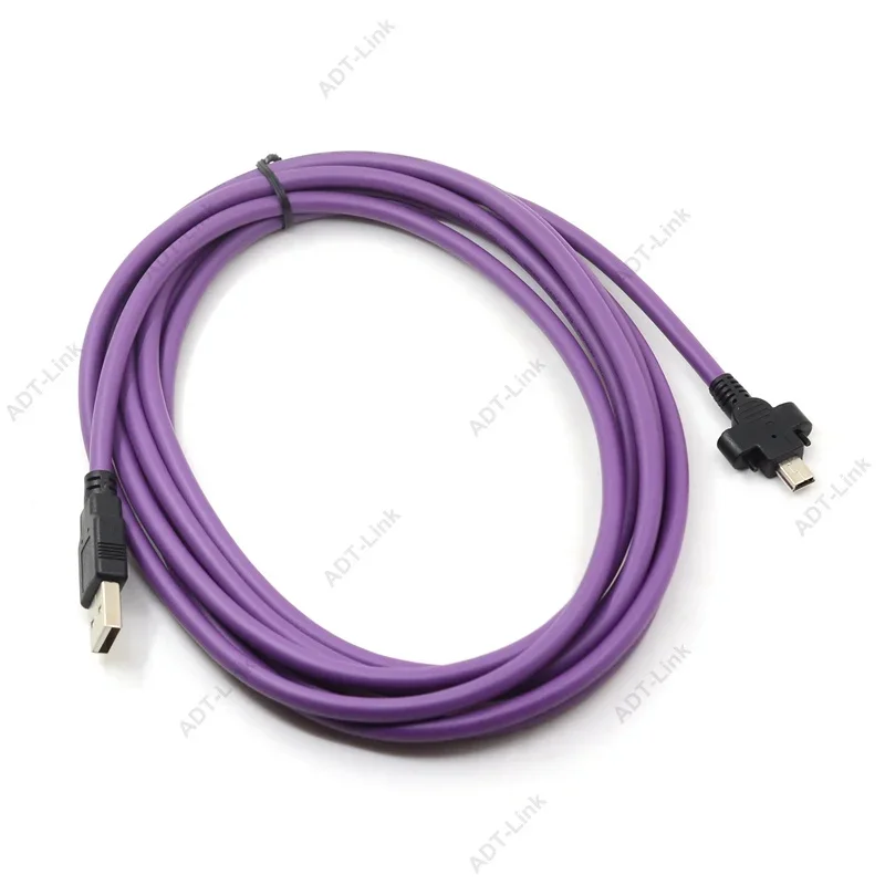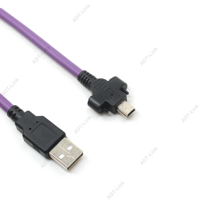 Comprar MINI USB de 5 pines con tornillo fijo a USB 2,0 A macho, cadena de remolque de alta flexibilidad, Cable de datos de cámara Industrial, Cable a juego de visión artificial