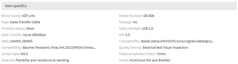 Mini Cable de cámara industrial USB de visión artificial Mini USB de 5 pines con bloqueo de tornillo M3 de 3m 5m