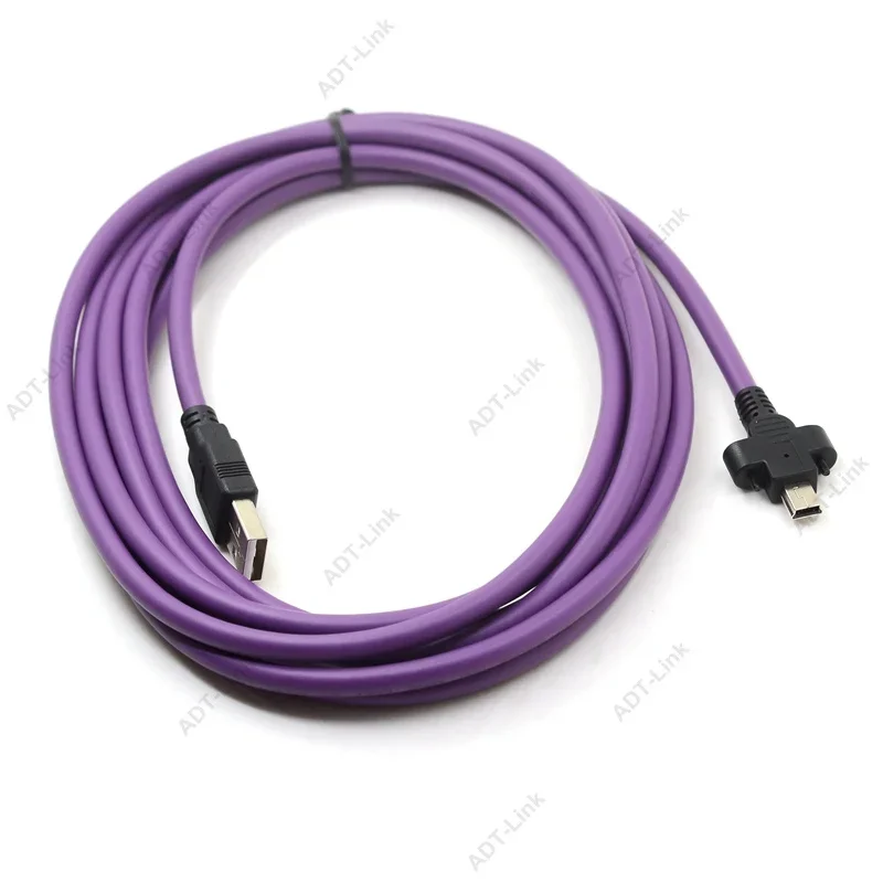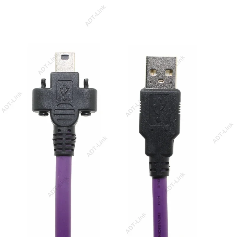 Comprar MINI USB de 5 pines con tornillo fijo a USB 2,0 A macho, cadena de remolque de alta flexibilidad, Cable de datos de cámara Industrial, Cable a juego de visión artificial