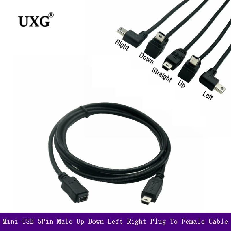 Comprar Mini-usb de 90 grados, Cable adaptador de datos de 5 pines, macho arriba, abajo, izquierda, extensión de conector hembra, 0,25 m, Iead