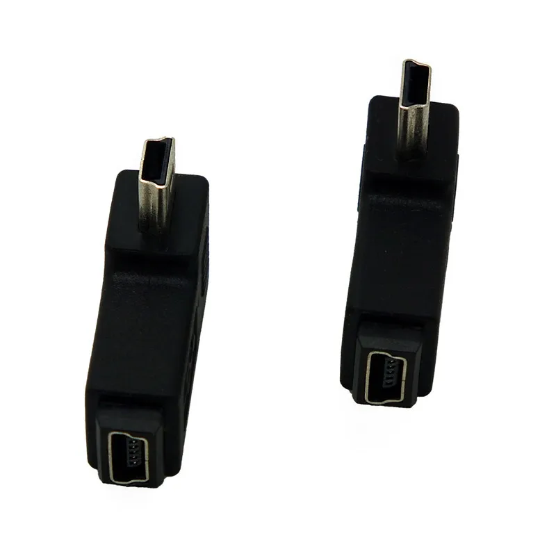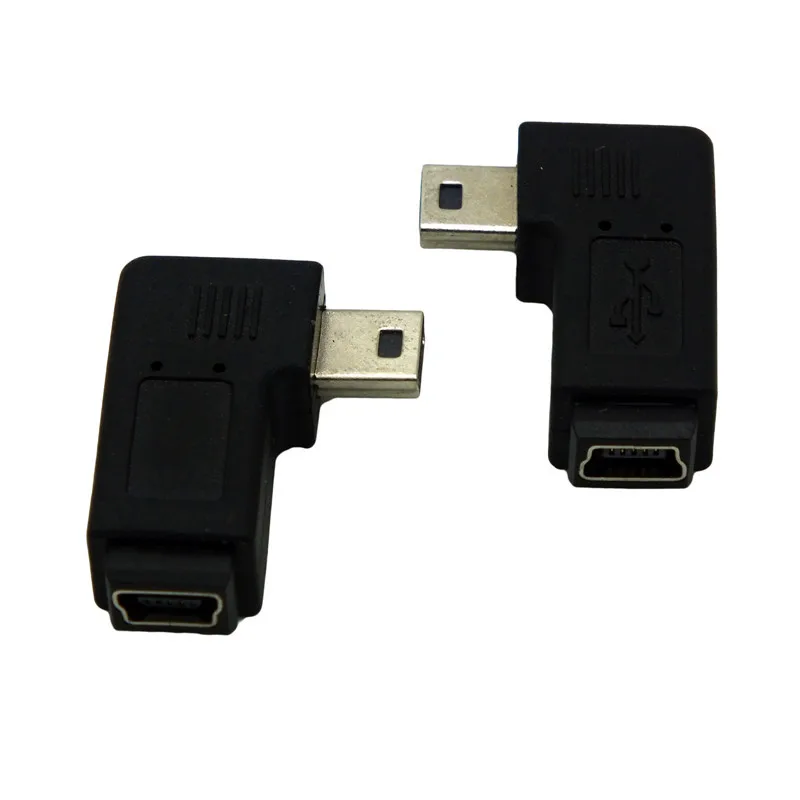 Ángulo de 90 grados Mini USB macho a hembra Adaptador en ángulo 2 piezas