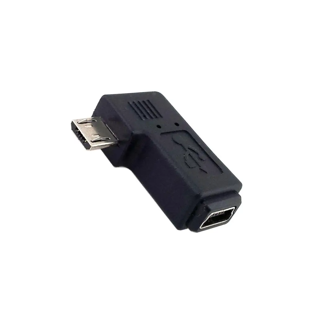 Adaptador de corriente de sincronización de datos Mini USB hembra de 5 pines a micro USB macho en ángulo izquierdo y derecho de 90 grados
