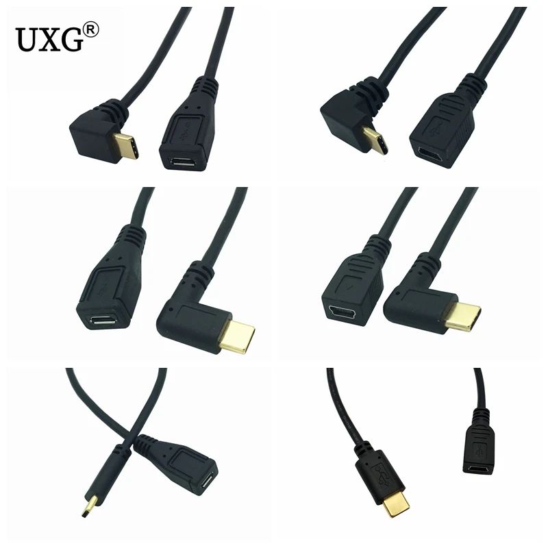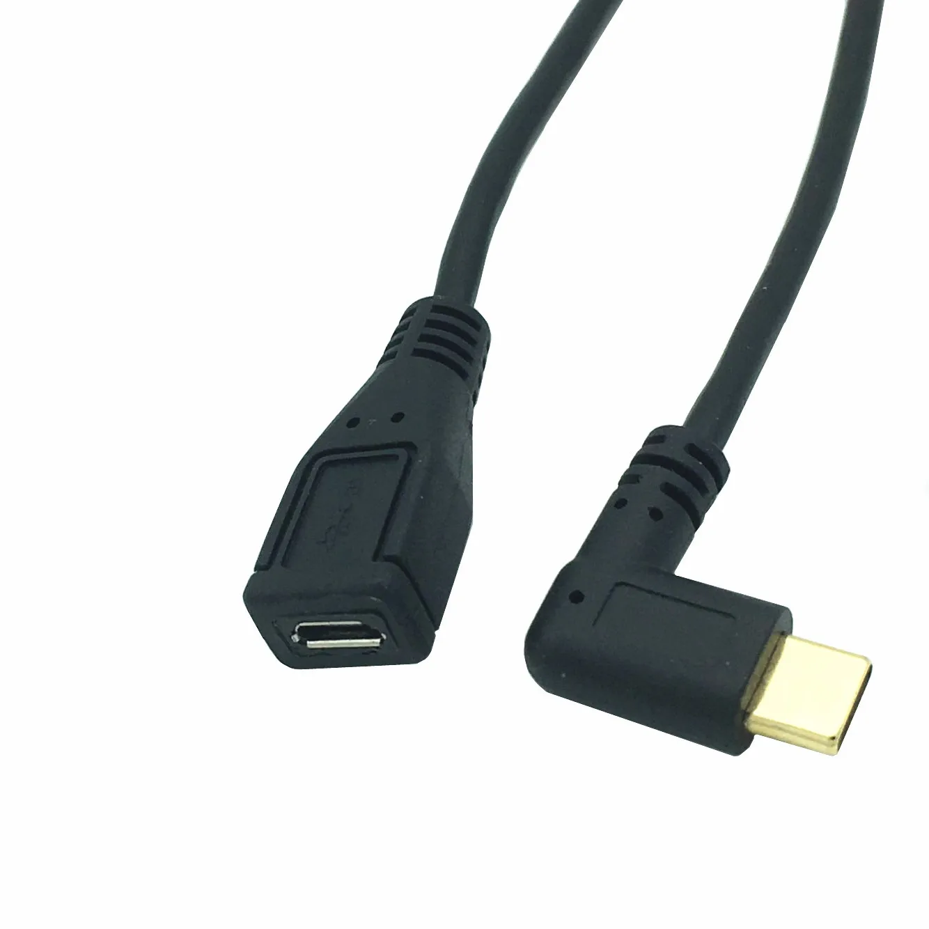 Comprar Mini USB hembra chapado en oro a USB-C, adaptador macho de 90 grados tipo c 3,1, cable OTG para lector de tarjetas de disco U, teclado de disco duro