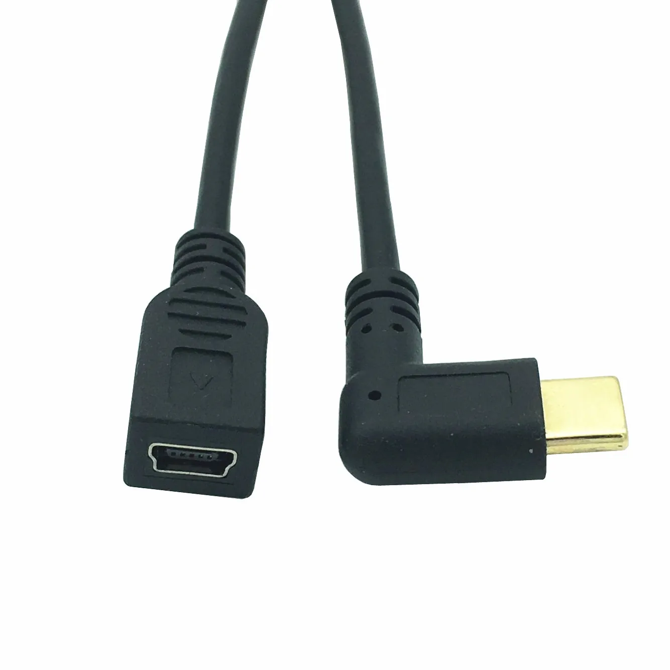 Comprar Mini USB hembra chapado en oro a USB-C, adaptador macho de 90 grados tipo c 3,1, cable OTG para lector de tarjetas de disco U, teclado de disco duro