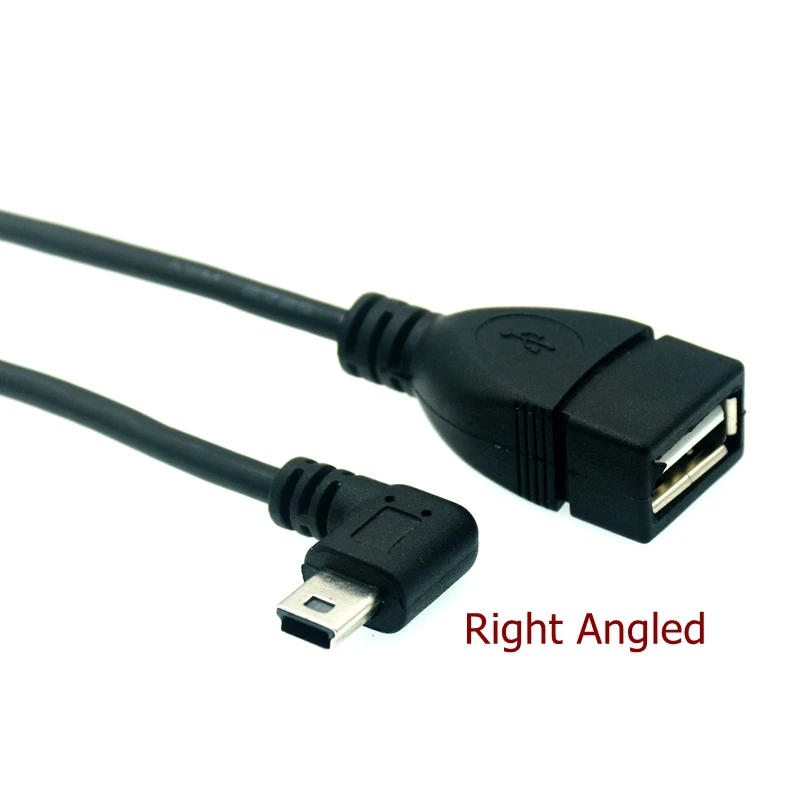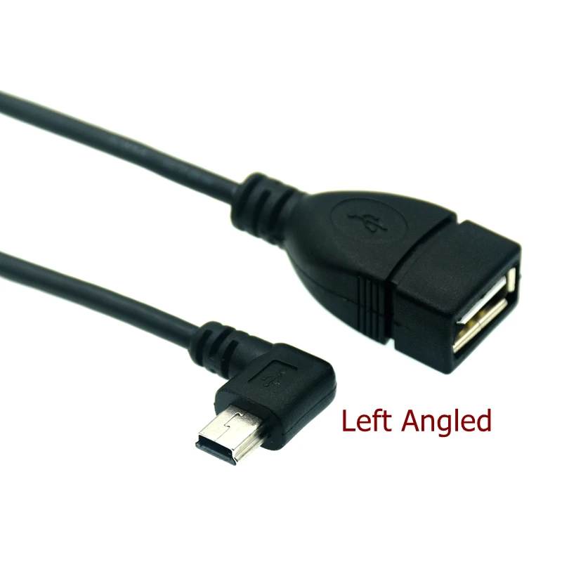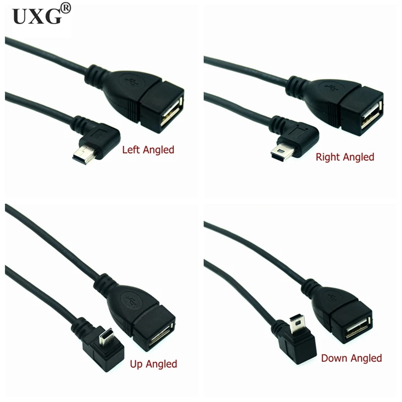 Comprar Mini USB OTG hembra a Mini B, adaptador de cable corto macho de 5 pines, 90 grados, 4, izquierda, derecha, arriba y abajo, 0,25 m