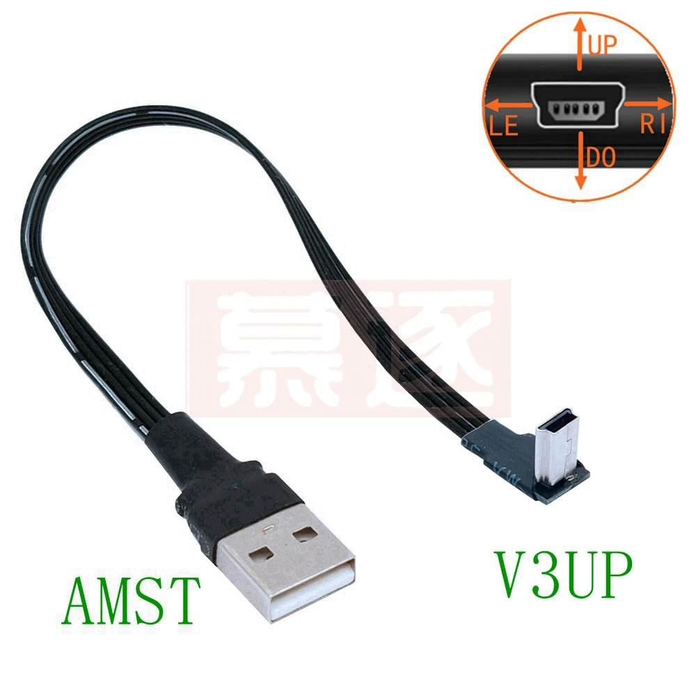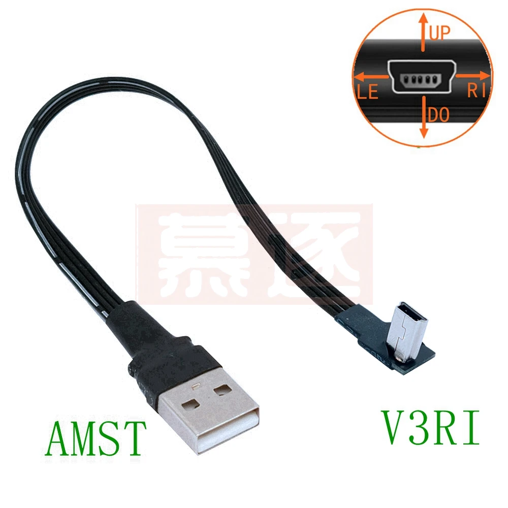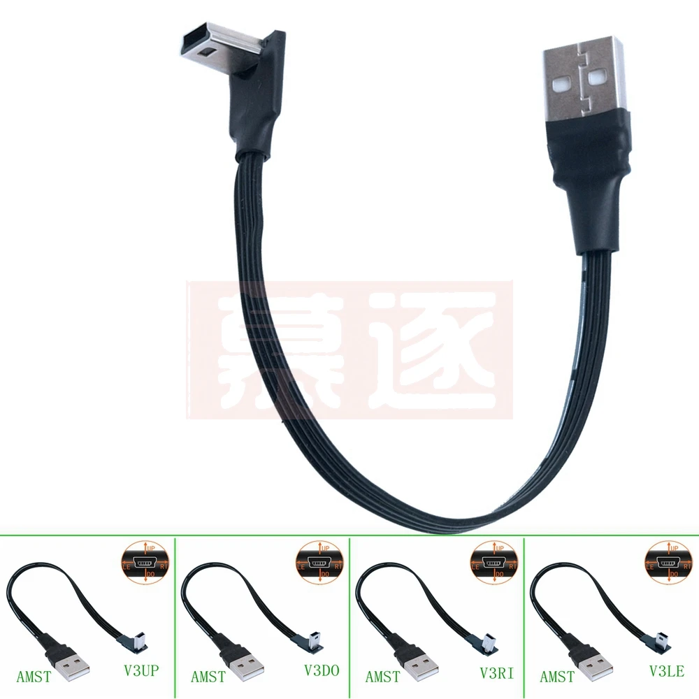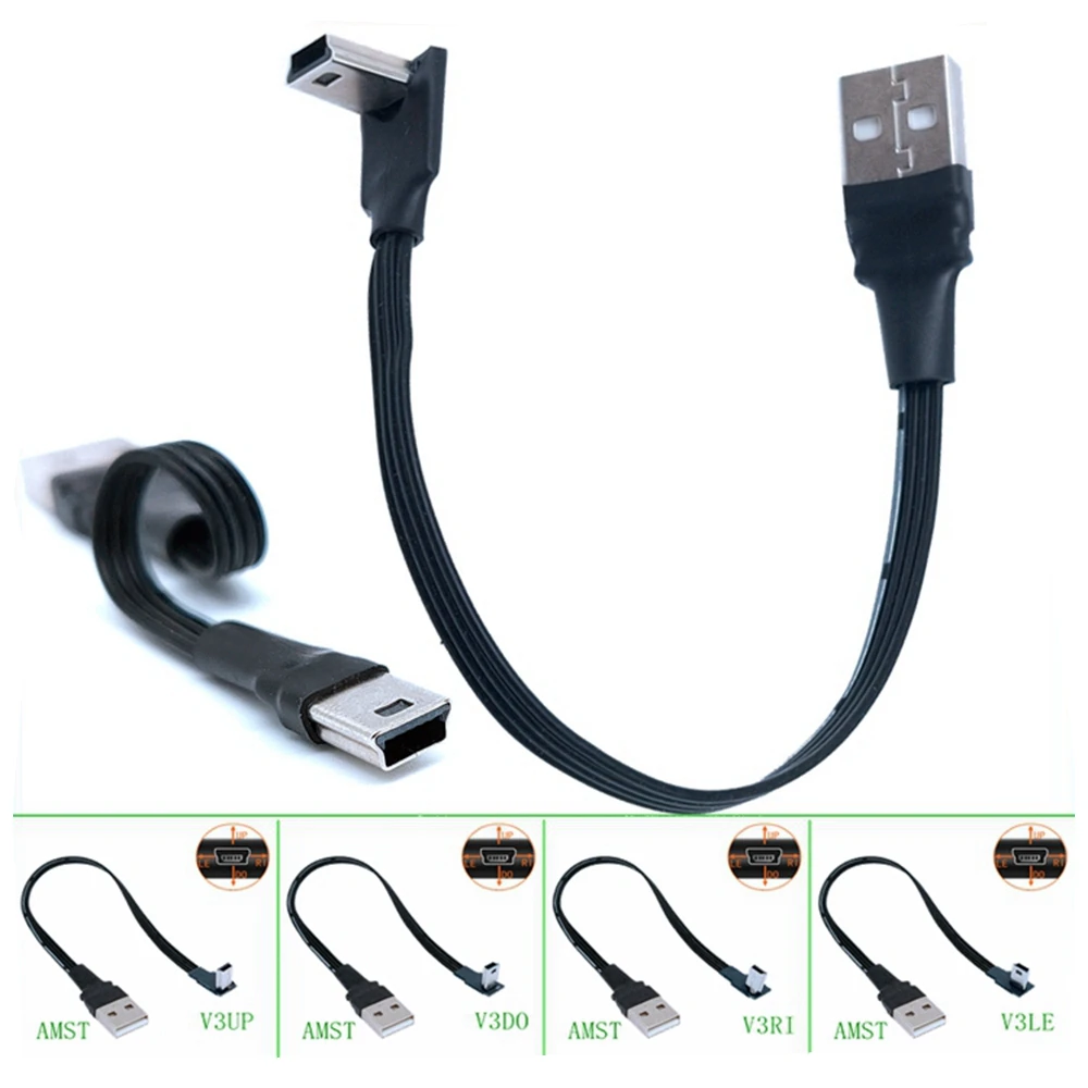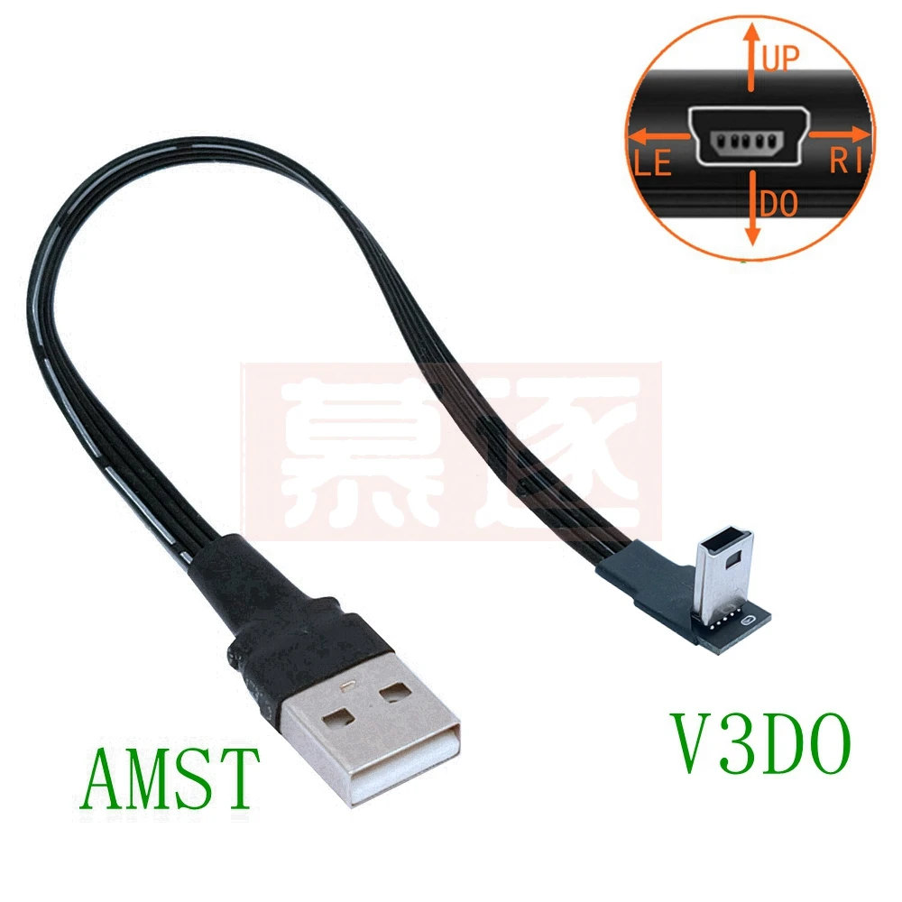 Comprar Mini USB tipo B de 5 pines macho arriba abajo izquierda derecha en ángulo de 90 grados a USB 2,0 macho Cable de datos de 0,25 m 0,5 m