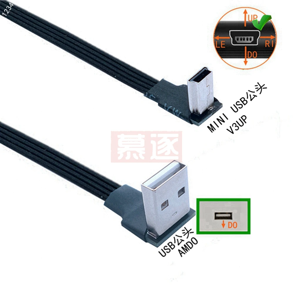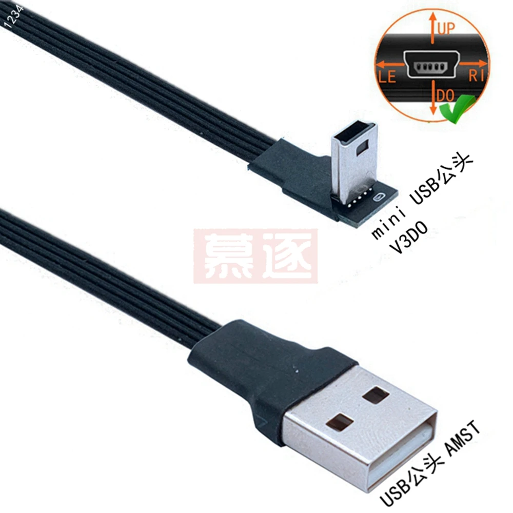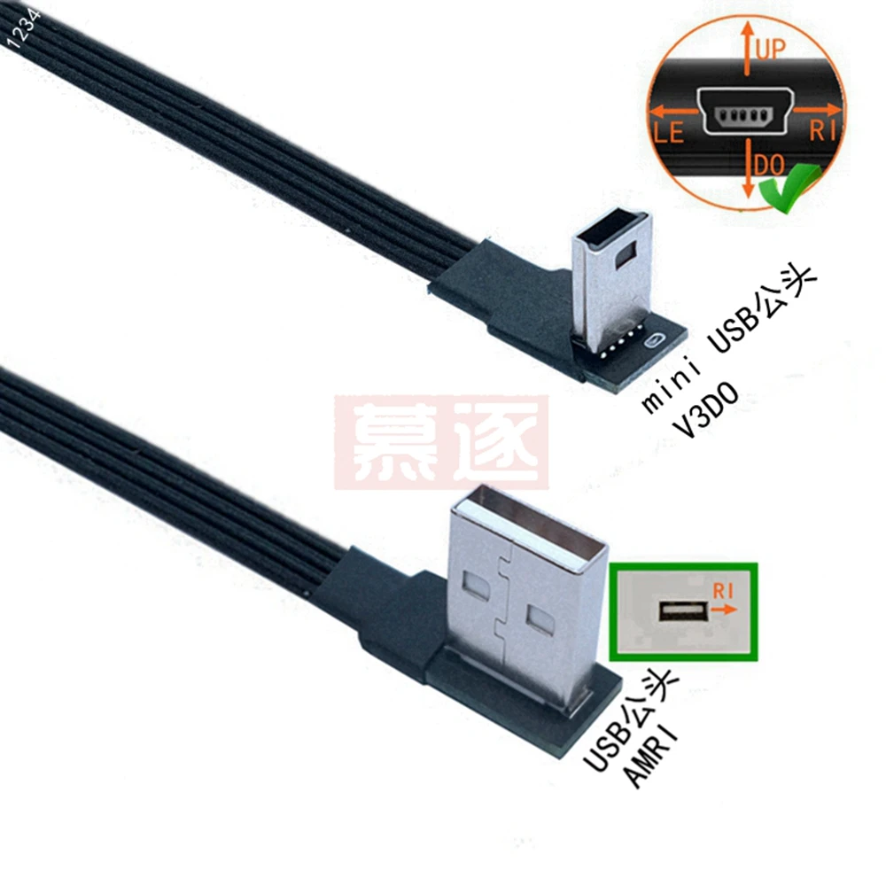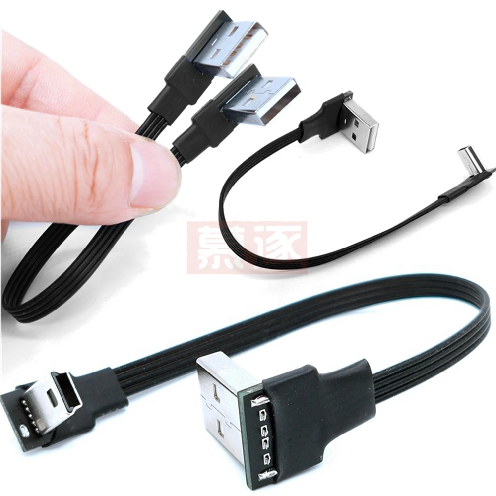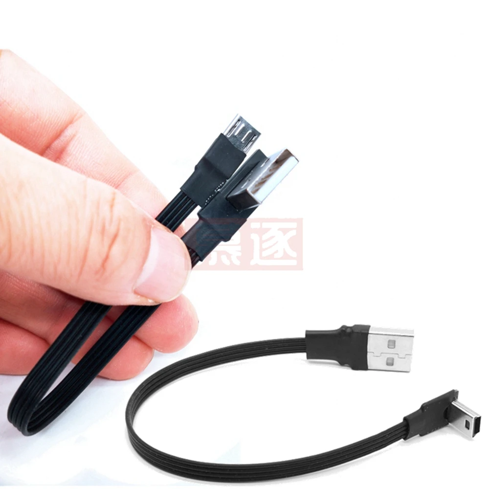 Comprar Mini USB tipo B flexible súper plano, Cable de datos macho de 5 pines, arriba abajo, izquierda y derecha, ángulo de 90 grados a USB 2,0, 0,1 m, 0,2 m, 0,5 m, 1m
