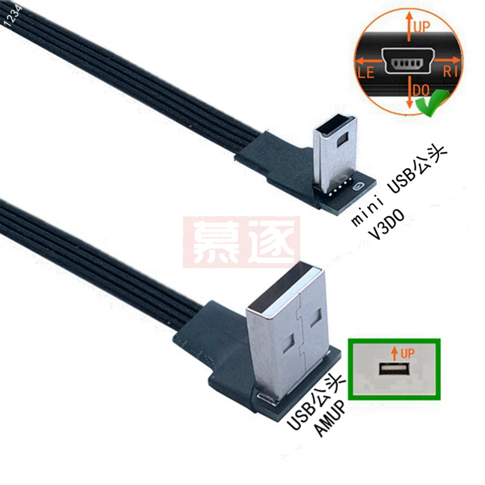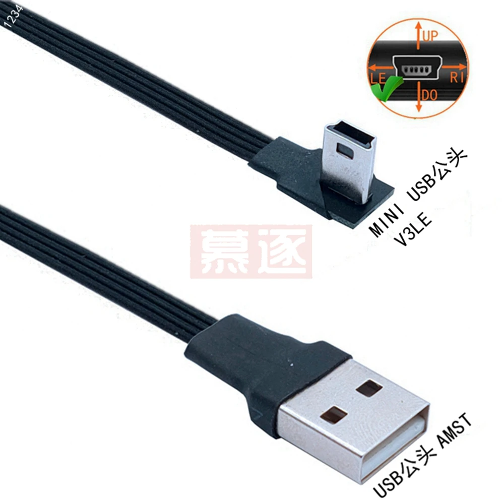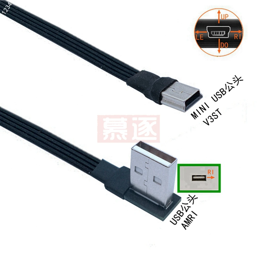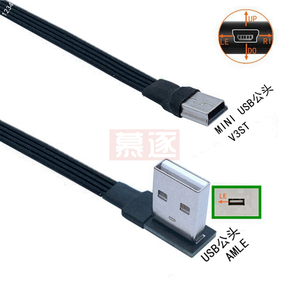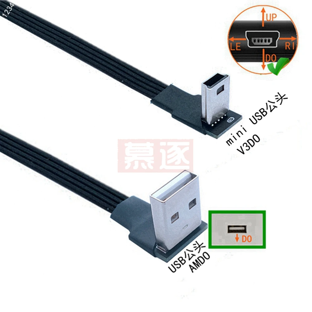 Comprar Mini USB tipo B flexible súper plano, Cable de datos macho de 5 pines, arriba abajo, izquierda y derecha, ángulo de 90 grados a USB 2,0, 0,1 m, 0,2 m, 0,5 m, 1m