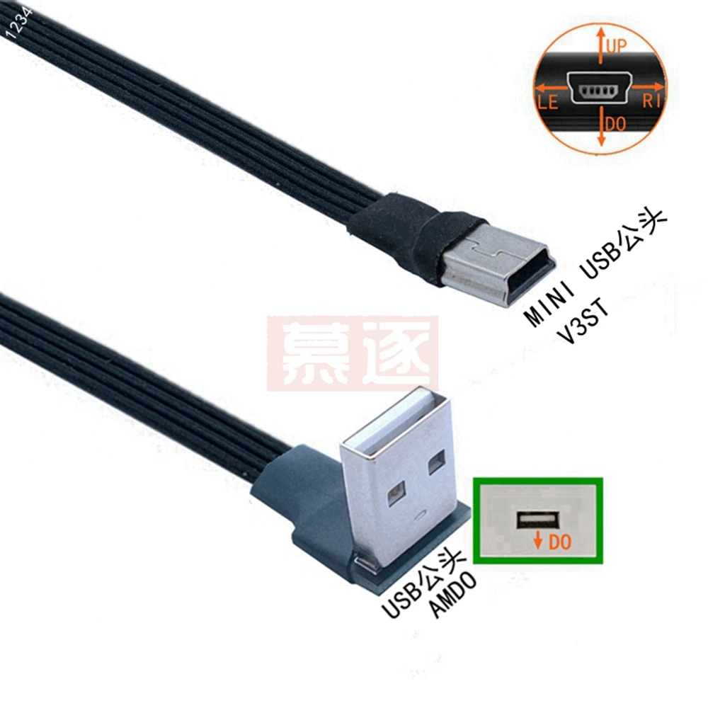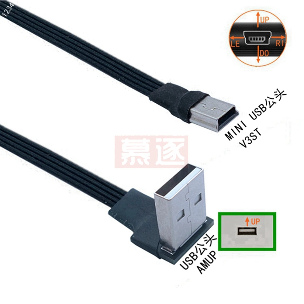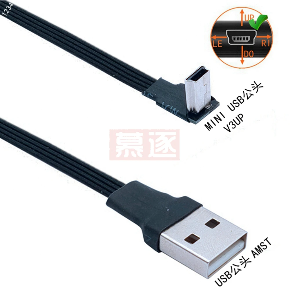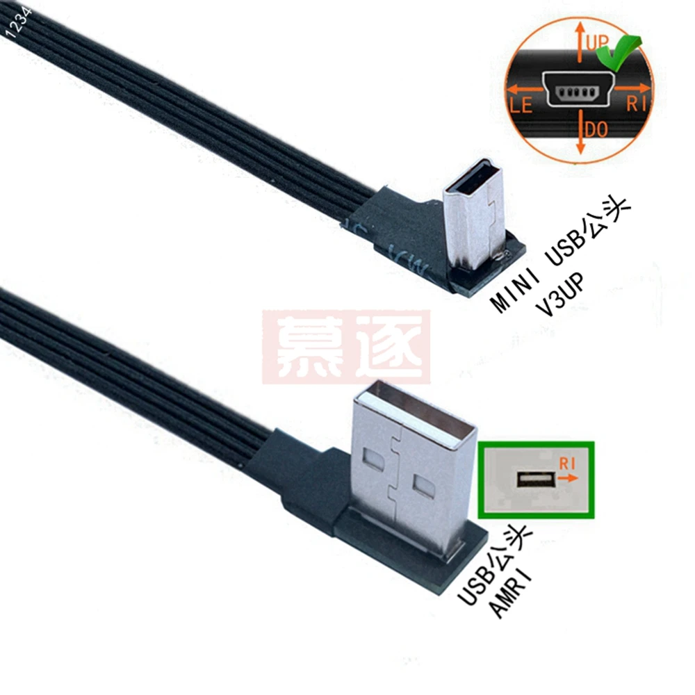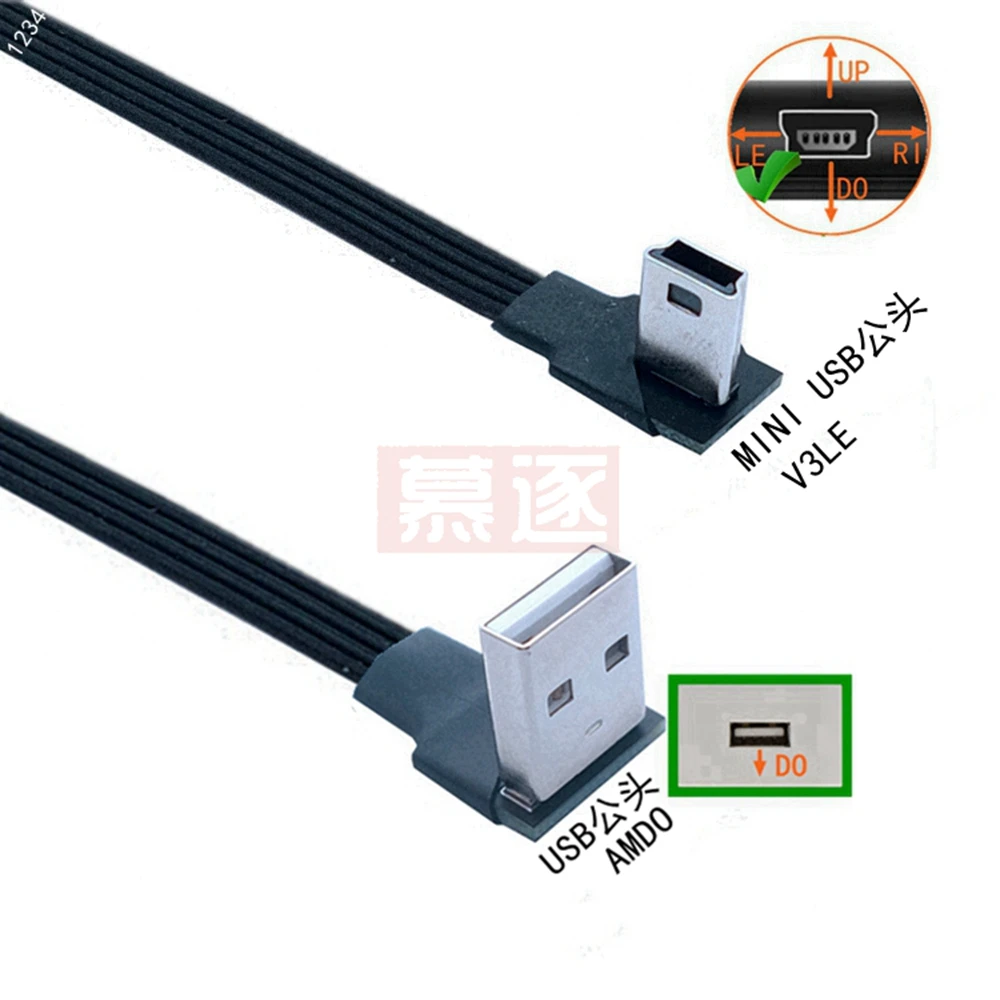 Comprar Mini USB tipo B flexible súper plano, Cable de datos macho de 5 pines, arriba abajo, izquierda y derecha, ángulo de 90 grados a USB 2,0, 0,1 m, 0,2 m, 0,5 m, 1m