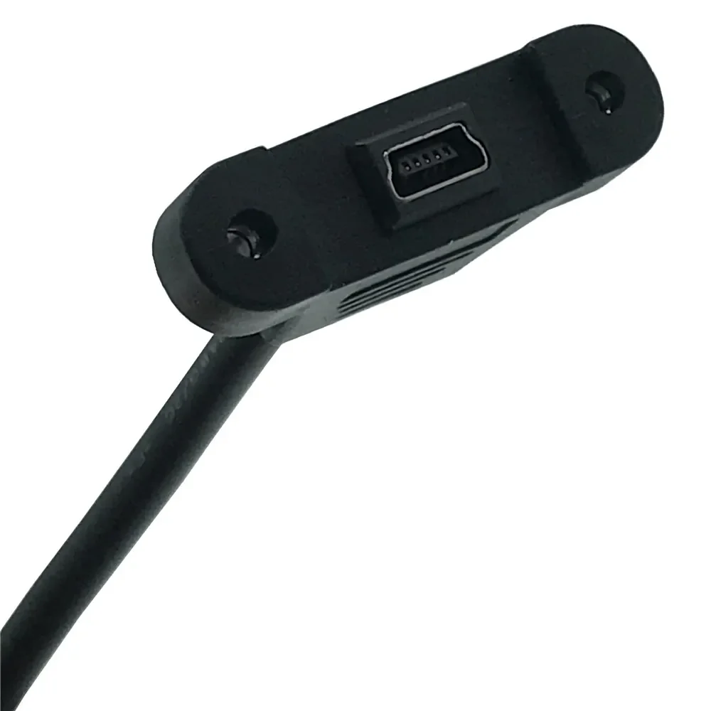 Comprar Mini USB USB 2,0 conector macho a Mini USB 2,0 Cable de extensión hembra paso 27,5mm con tornillos orificio de montaje en Panel 0,3 m 0,5 m