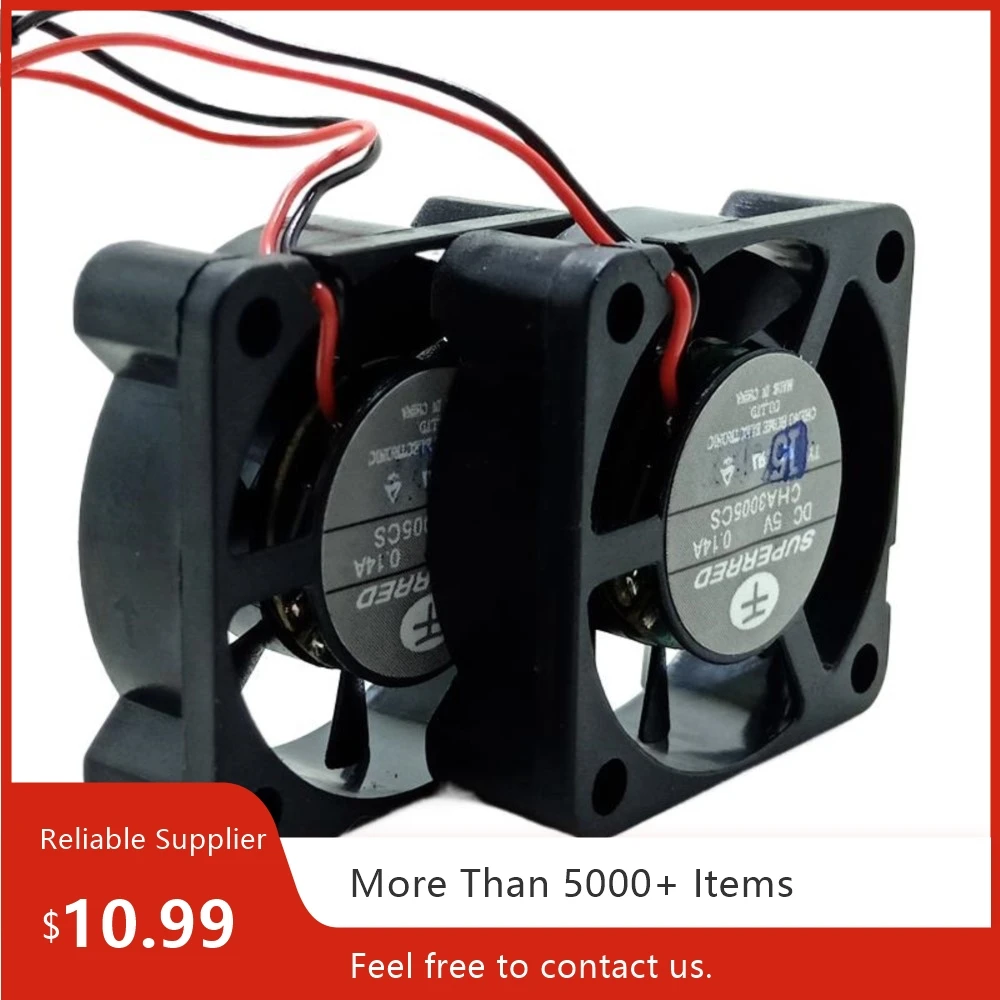 Product Description: The CHA3005CS Dual Mini Fan is designed for efficient cooling in compact devices like TV set-top boxes, routers, and UAVs. With a size of 30x30x10mm, this 5V DC fan ensures reliable performance for temperature-sensitive electronics. Featuring single ball bearings for durability, it operates at 5000 RPM with a power consumption of just 0.7W. Equipped with a 2-pin small plug, this fan is easy to install and maintain. Selling Points: High Efficiency: Provides optimal cooling for small electronics, preventing overheating and ensuring stable operation. Compact Size: Ideal for tight spaces like TV set-top boxes, routers, and mini-PCs. Reliable Performance: With a speed of 5000 RPM and durable single ball bearing design, it offers consistent airflow with minimal noise. Low Power Consumption: Operates on a 5V DC power supply with low energy usage (0.7W). Applications: TV Set-Top Boxes: Keeps devices cool during extended use, preventing overheating. Routers and Modems: Enhances airflow to maintain optimal performance in networking equipment. UAVs (Drones): Helps manage temperature for compact UAV systems, ensuring smooth operation. Miniature Electronics: Perfect for various compact devices requiring efficient cooling.