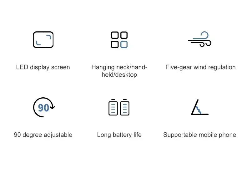 2. Ajuste del viento de 5 velocidades, 90 ° ajustable,