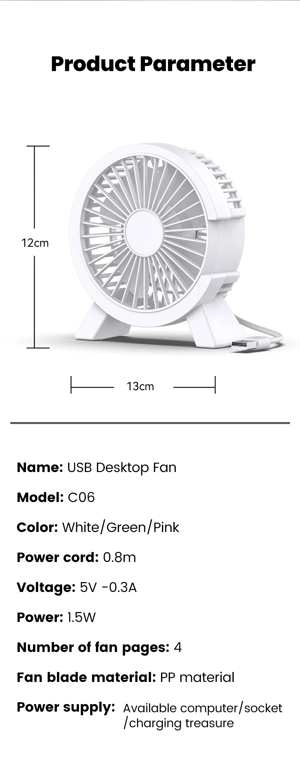 1.Interfaz USB para uso enchufable, sin batería incluida, sin interruptor, incapaz de ajustar la velocidad del viento