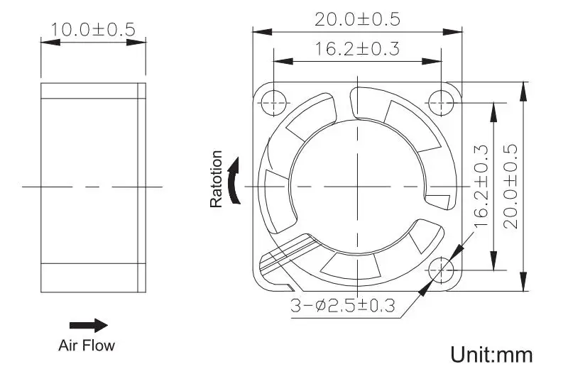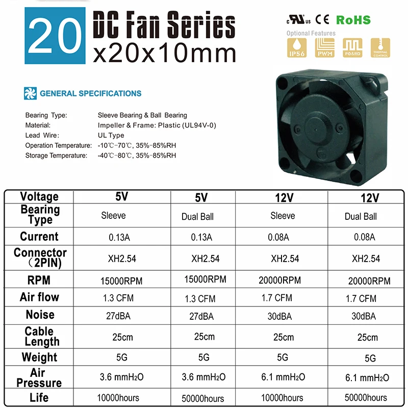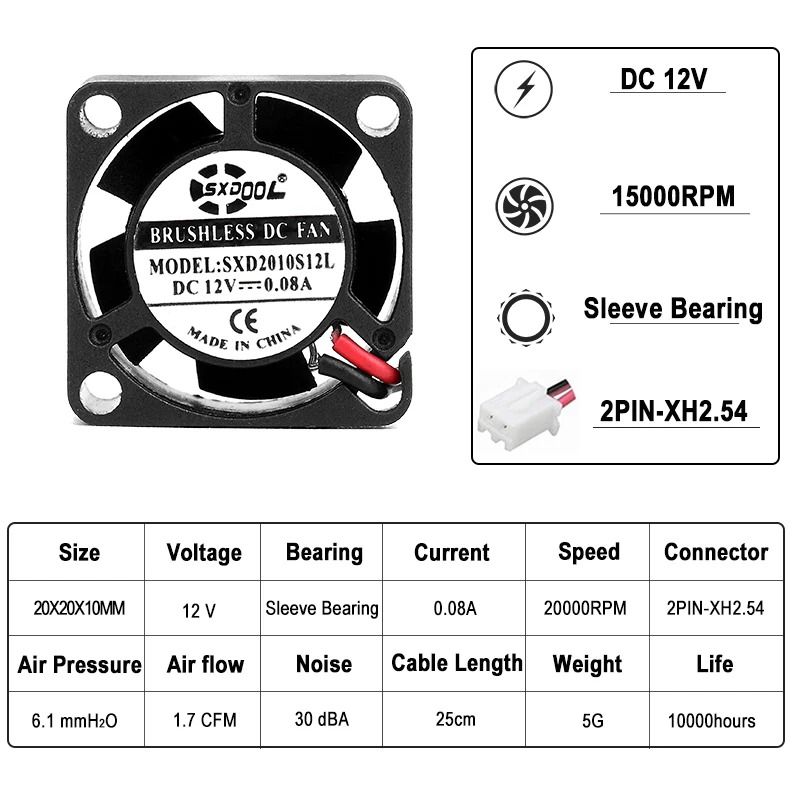 Dimensión del ventilador: 20x20x10mm