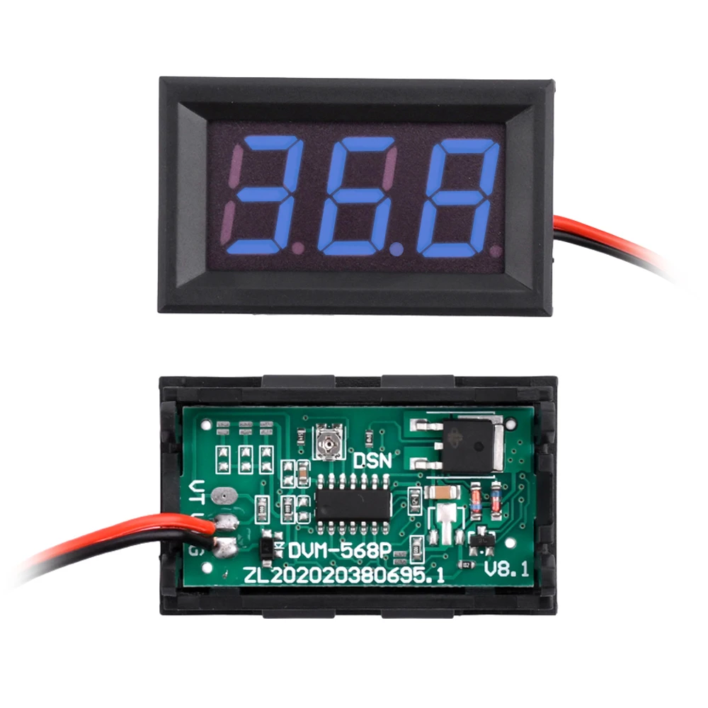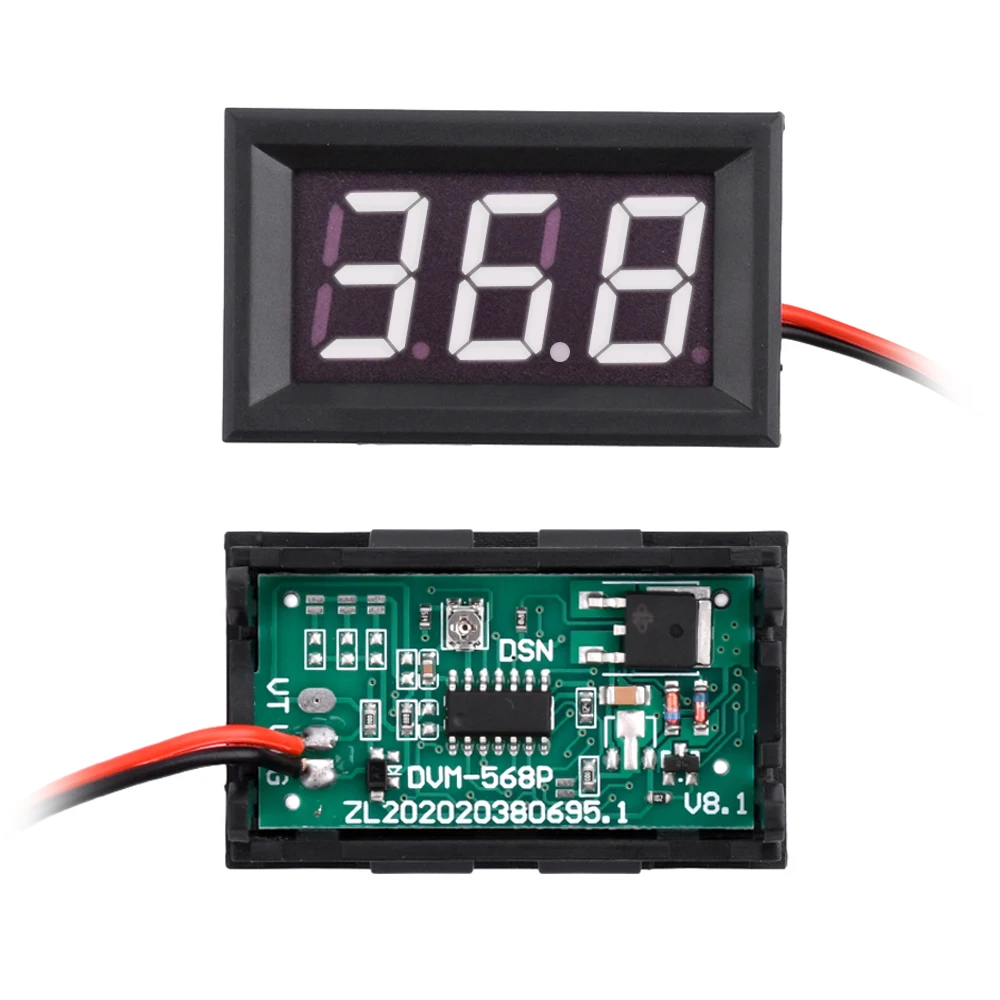 1 x Mini voltímetro DC5-120V Panel de pantalla digital LED medidor de voltaje 2 cables 0.56 '' medidor de probador de monitor de voltaje para motocicleta y coche