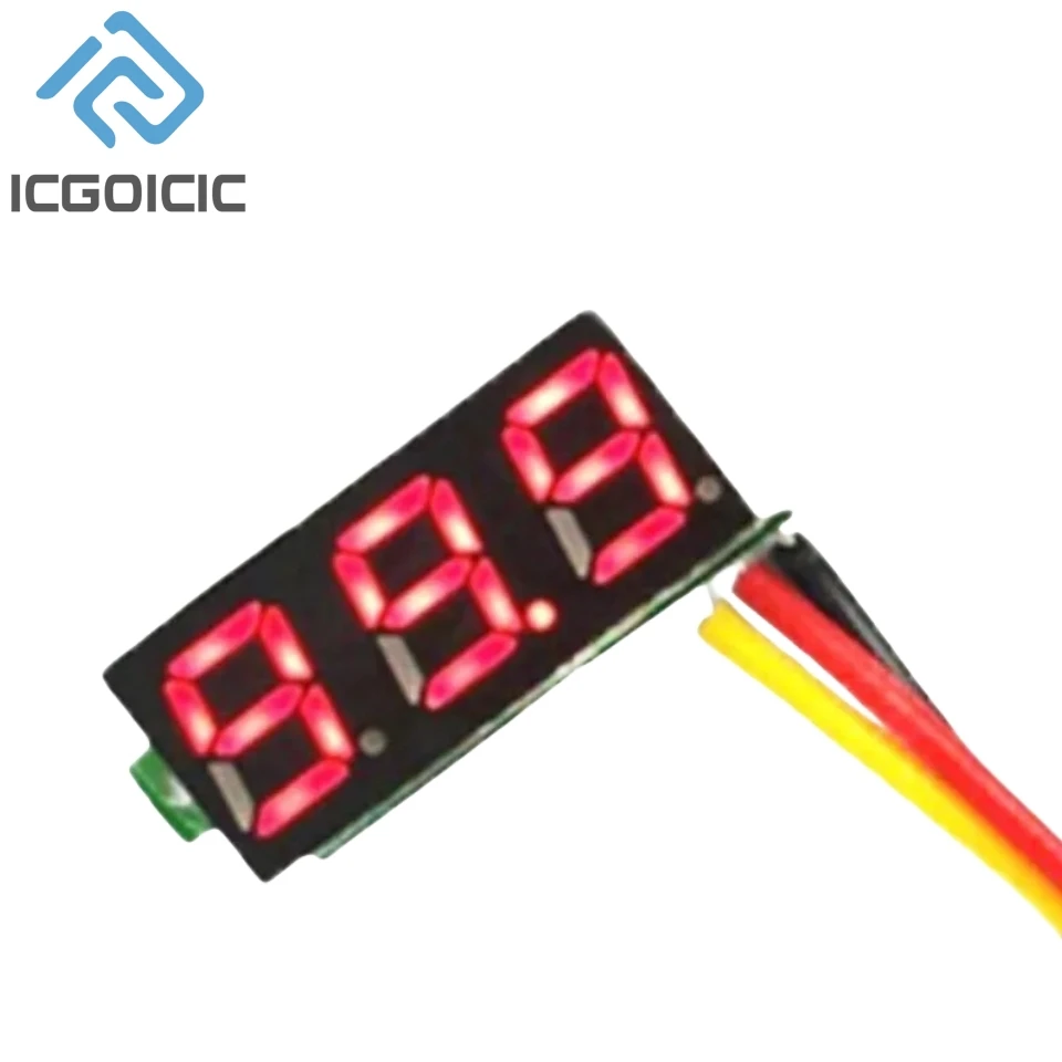 Voltímetro digital DC0-100V DC de tres cables, voltímetro digital LED de 0,28 pulgadas, color azul ajustable