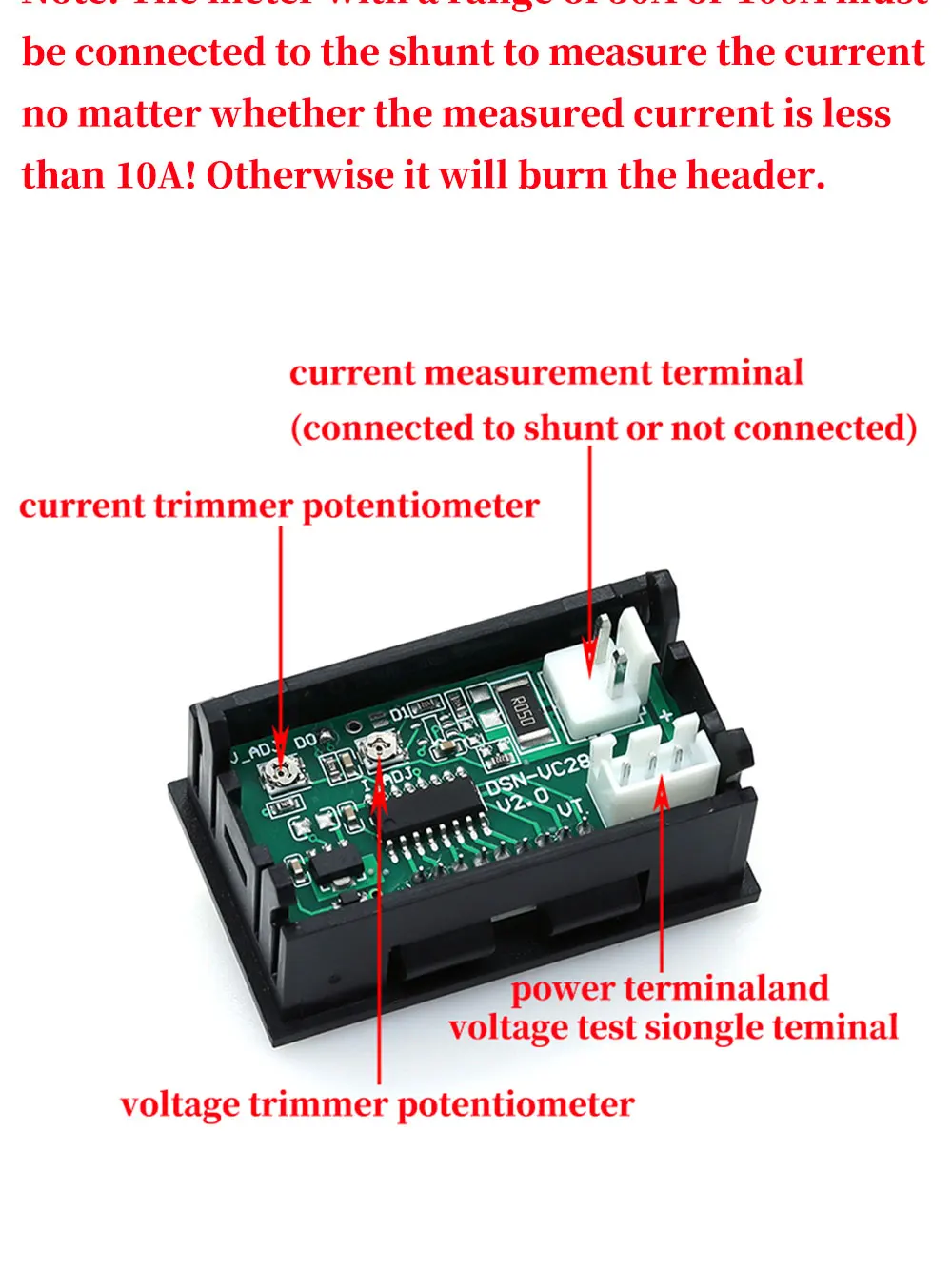 Libera humo cuando se le suministra energía de alrededor de 17 voltios. 7805 se quemó, liberó 17 voltios al chip ADC, que emitió humo. En la descripción: "Voltaje de funcionamiento del medidor: DC 4 - 30V (El voltaje de entrada máximo no puede exceder los 30V.) De lo contrario, el medidor se quemará. Esto no es nada serio!! !