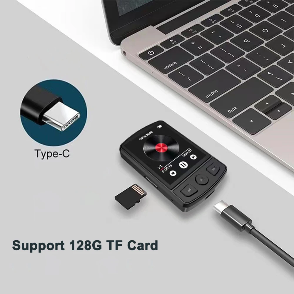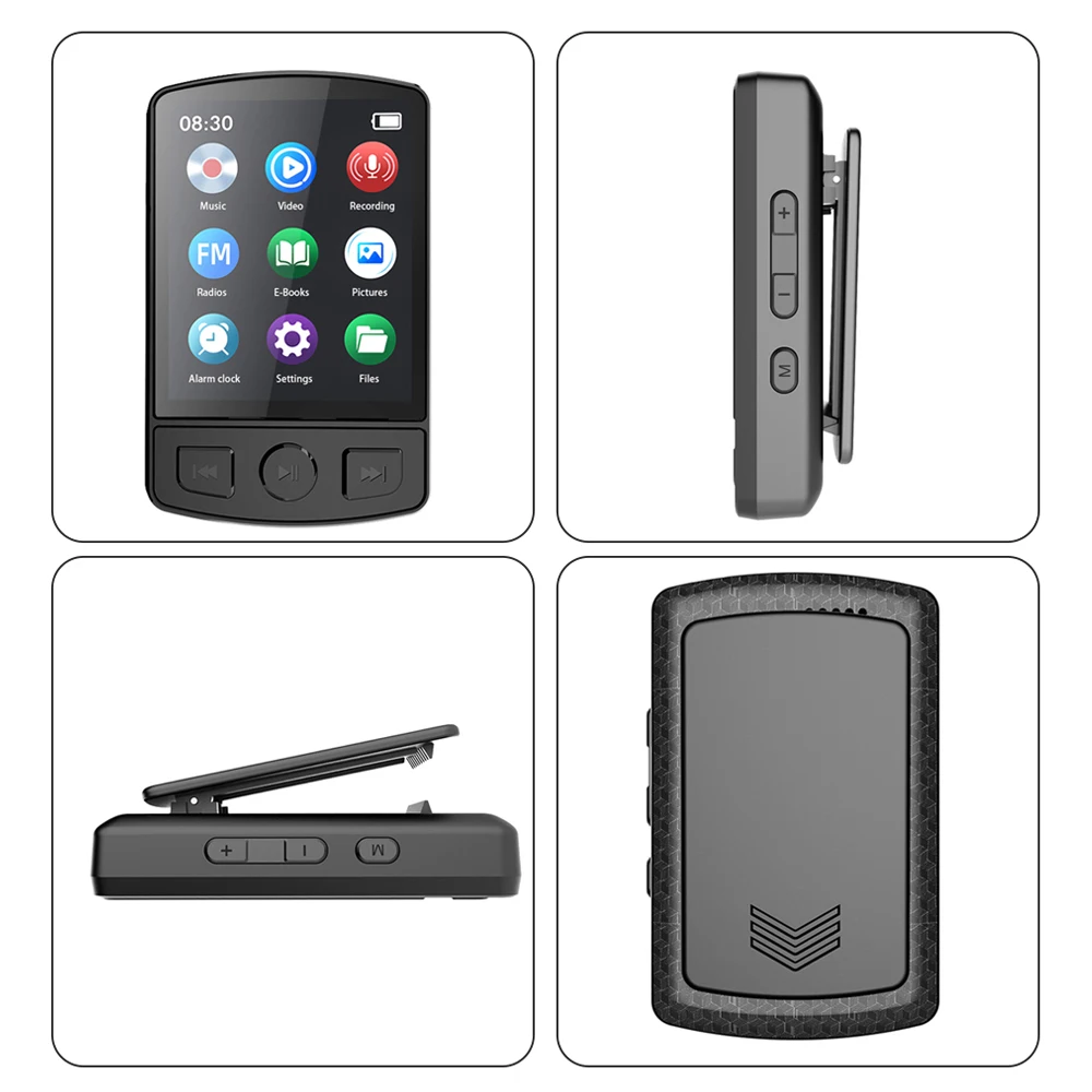 Reproductor de MP3, Bluetooth 5,2, Clip deportivo portátil, reproductor de música HiFi sin pérdidas, Mini walkman MP3, pantalla de 1,77 pulgadas con grabadora de Radio FM