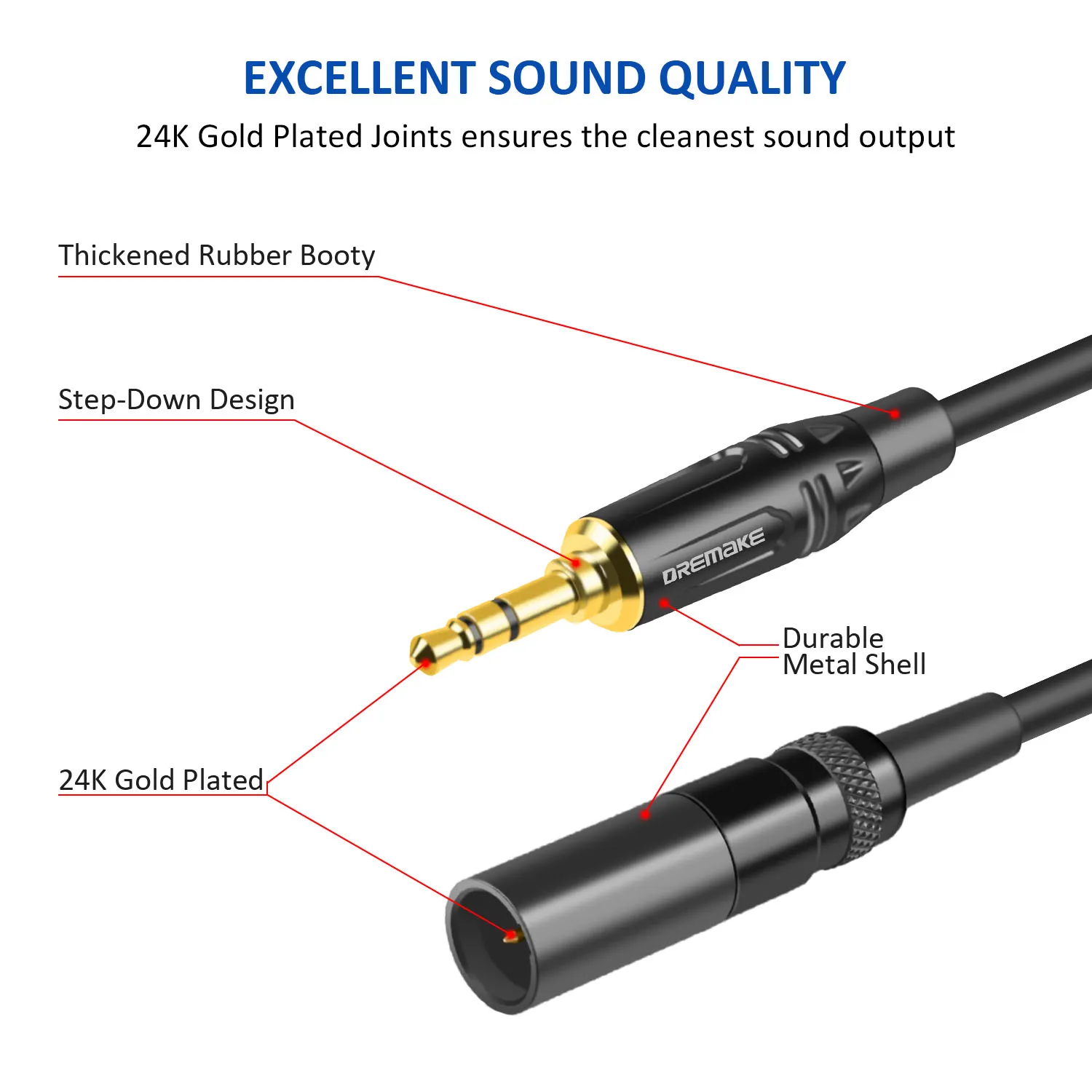 1 x DREMAKE 3,5mm (1/8 pulgadas) TRS macho a Mini-XLR macho Cable convertidor