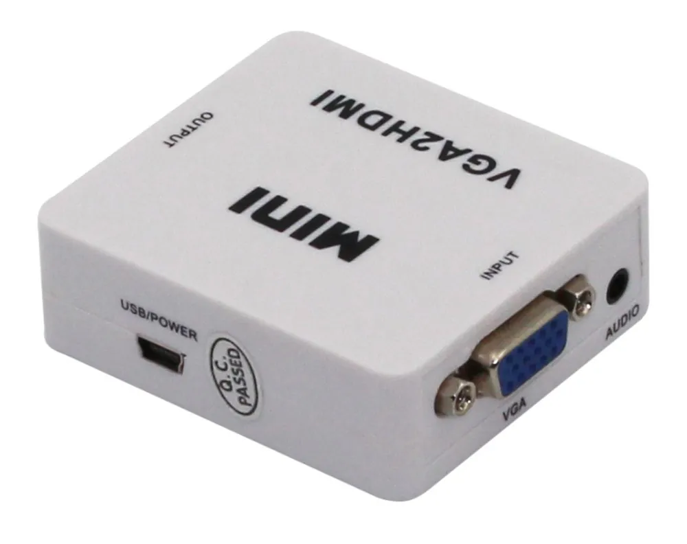Este Adaptador convertidor de VGA a HDMI puede convertir la señal general de PC y la señal de audio al formato HDMI para pantallas HD. Con Este convertidor, la computadora, computadora portátil, reproductor de DVD, consolas de juegos y algunos otros dispositivos de video que tienen entrada VGA pueden conectarse a pantallas grandes HD o proyectores HD que tienen entrada HDMI. Puede escalar la señal de video analógica desde la fuente de entrada de PC A LA SALIDA HDMI digital, HASTA T0 720P O 1080P. Además de escalar video, la caja escaladora también convierte la señal de audio de entrada de 3,5 MM a formatos digitales, luego la salida a HDMI combinándolo con el video.Características1. No es necesario instalar controladores, portátiles, flexibles, plug and play.2. Bajo consumo de energía3. El HDMI cumple con HDMI1.3.4. Gran capacidad de ancho de banda compatible con 1920x1080 a 60Hz.Especificaciones1. Puertos de entrada: conector de audio VGA de 3,5mm2. Puertos de salida: HDMI3. Dimensiones (MM): 66(D)x55(W)x20(H)4. Peso (g): 40Contenido del paqueteConvertidor VGA a HDMI con entrada de audio X1Línea de alimentación USB X1Paquete minorista X1Después DE LA VENTA:1. Asegúrese de que el paquete que recibió esté en buena situación antes de firmarlo.2. Si tiene algún problema con los productos o nuestro servicio, póngase en contacto con nosotros en cualquier momento.Sin dudarlo, en lugar de dejar comentarios o abrir una disputa, lo resolveremos.Lo antes posible.3. Nuestro propósito de servicio es hacer que cada cliente tenga una buena experiencia de compra.4. Por favor, déjenos un comentario positivo y una reseña de 5 estrellas, lo que traerá un mejor desarrolloOportunidad en nuestra tienda. Un buen comentario le será devuelto.5. Las sugerencias son bienvenidas.