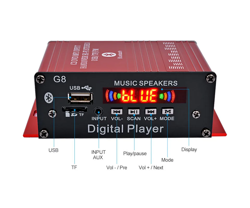 -Amplificador de potencia de audio portátil HIFI Digital Bluetooth y AUX.