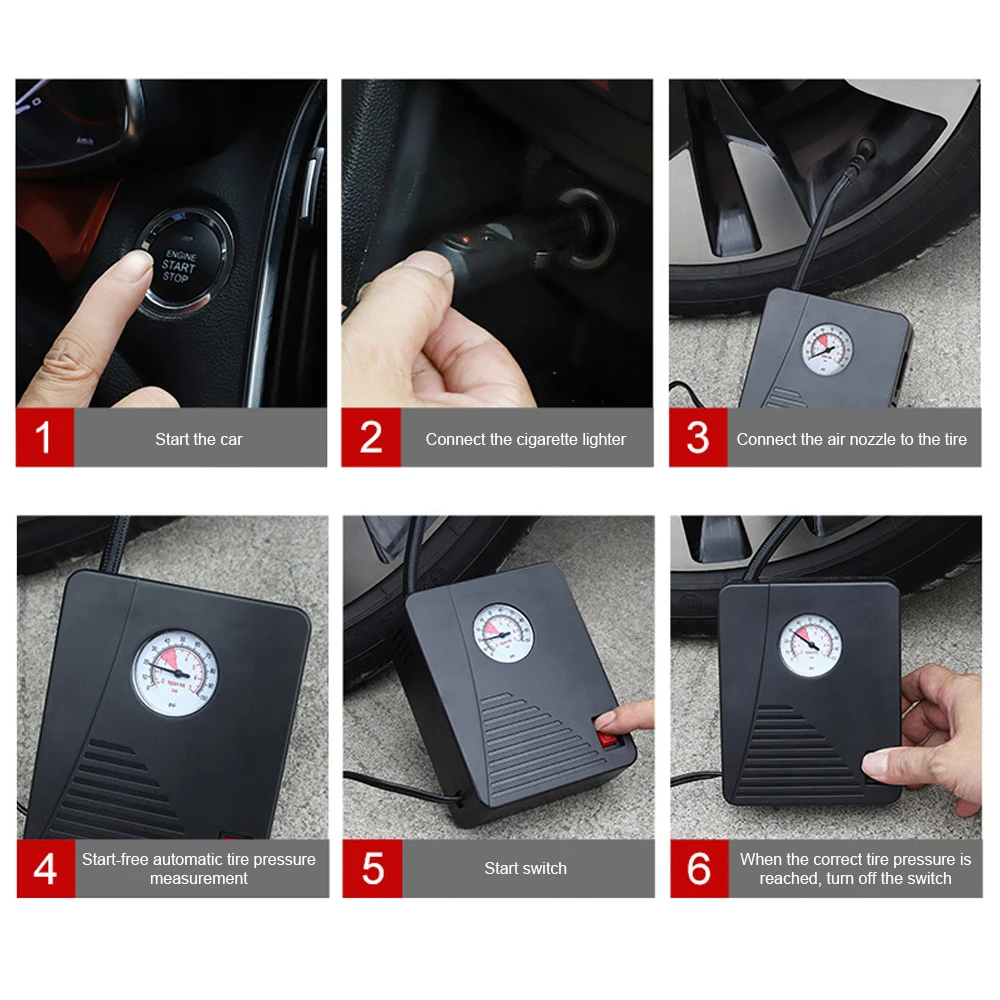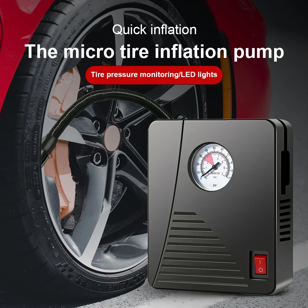 Comprar Minibomba de aire eléctrica para coche, Inflador de neumáticos de 96W, 12V, 100PSI, 35L/Min, compresor de aire portátil para coche, motocicleta, bicicleta, bola