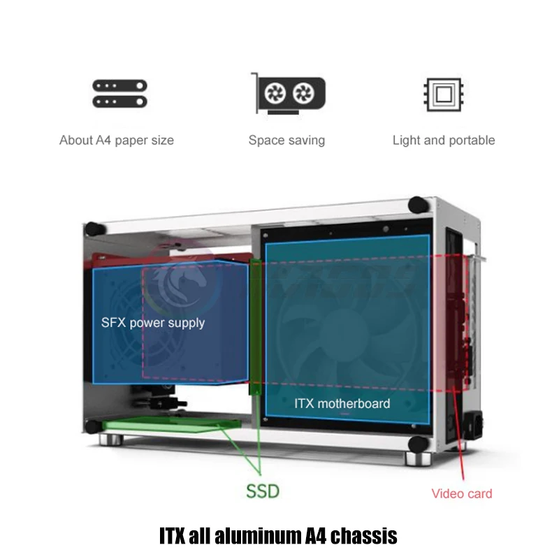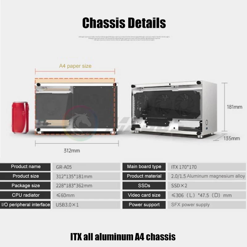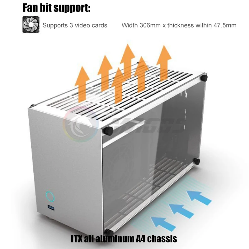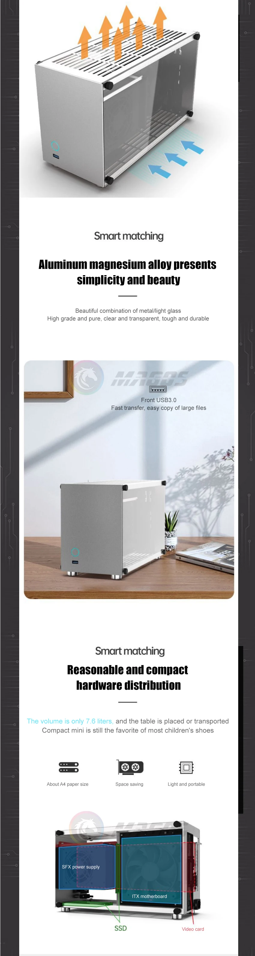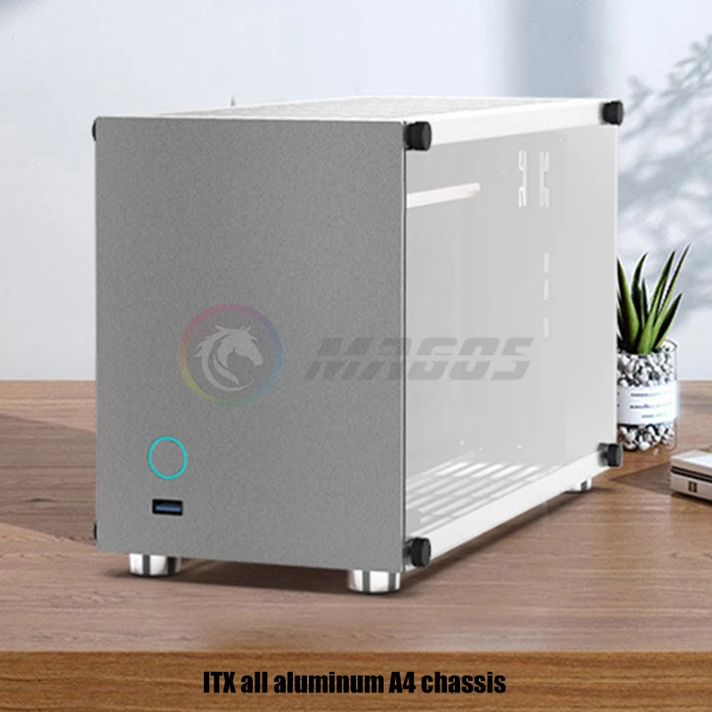 Comprar Minicaja ITX de aluminio y cristal de doble cara, caja de Gamer Smalle, tamaño de papel A4, compatible con SFX PSU/GPU/USB 300 de 3,0mm
