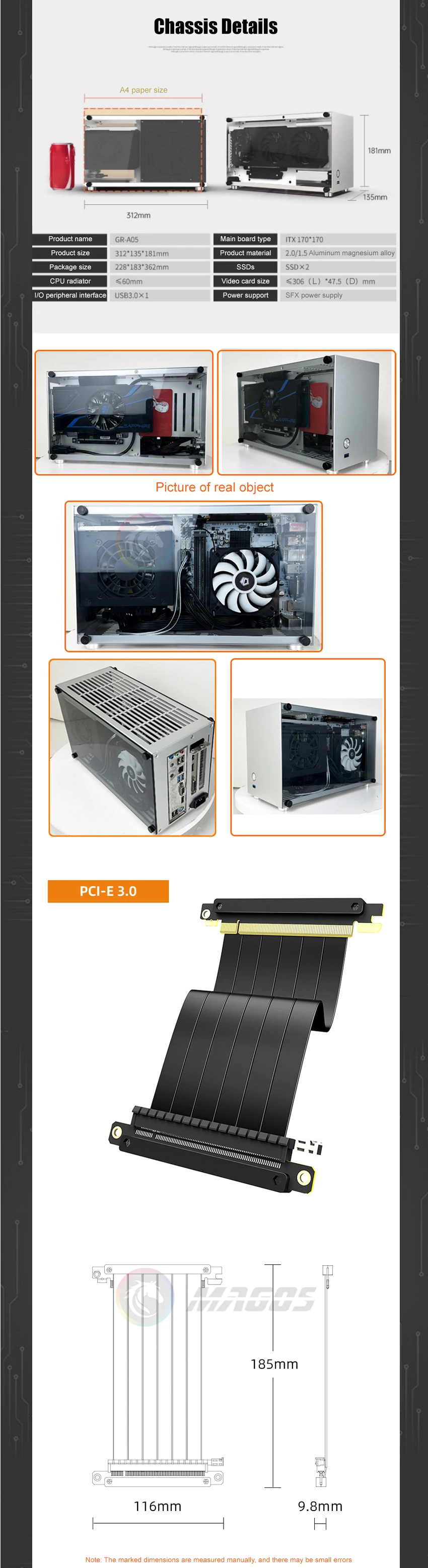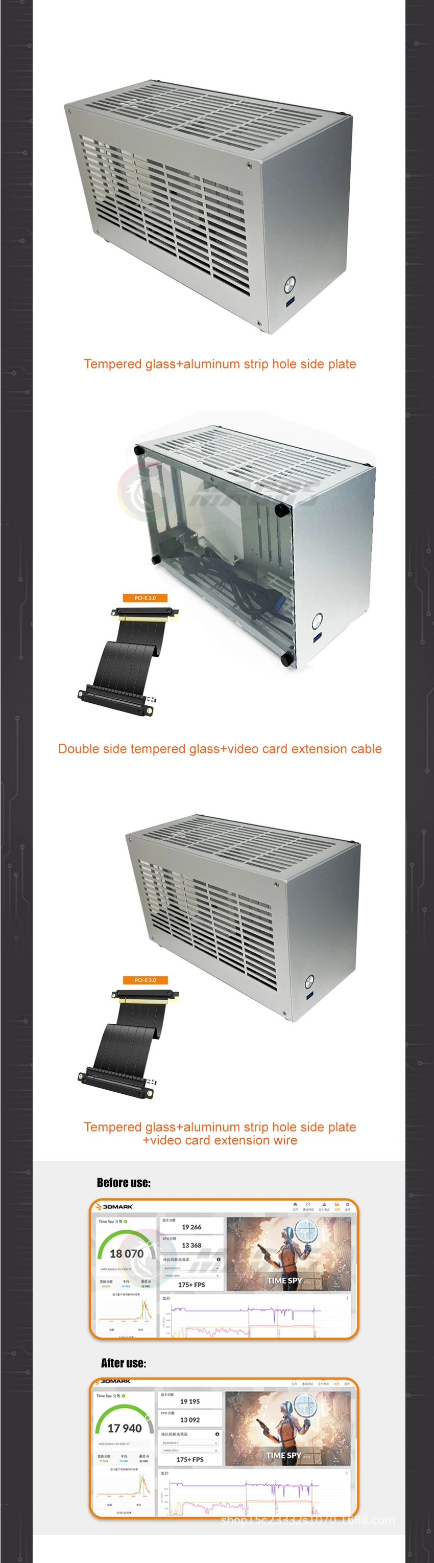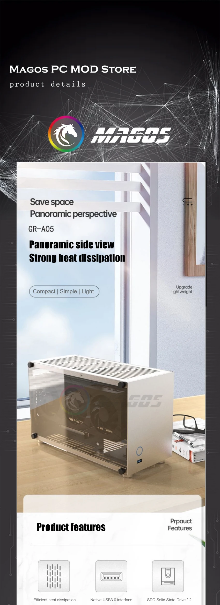 Comprar Minicaja ITX de aluminio y cristal de doble cara, caja de Gamer Smalle, tamaño de papel A4, compatible con SFX PSU/GPU/USB 300 de 3,0mm