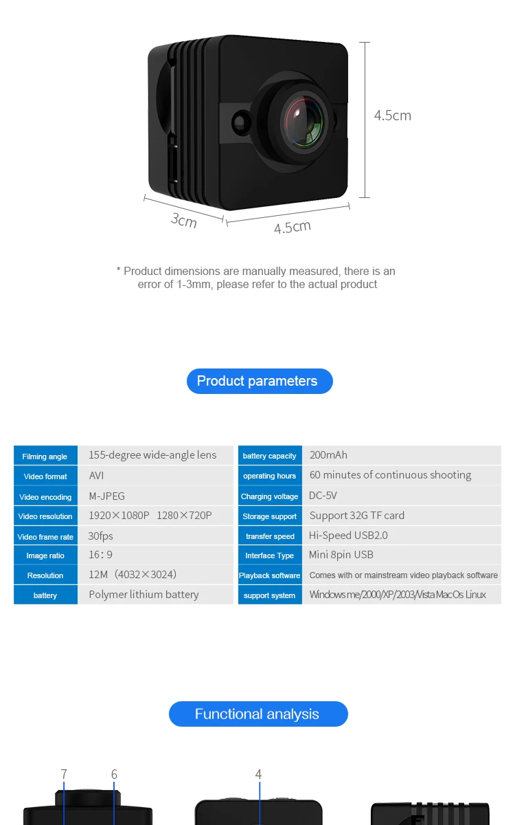 Comprar Minicámara de grabación directa con tarjeta aérea, DV, buceo, 720P, HD, cámara de deportes, grabador de vídeo impermeable