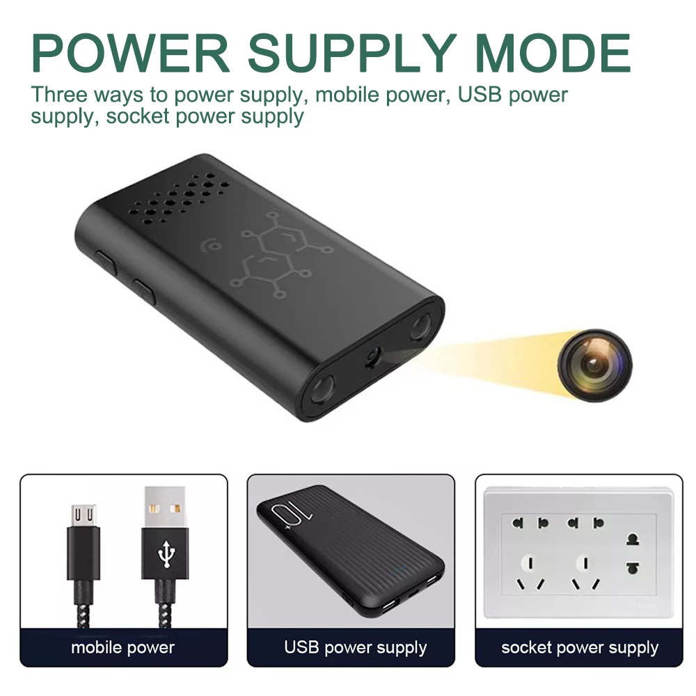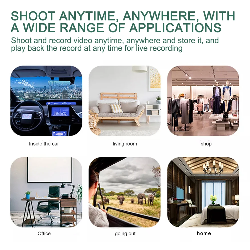 Características:1. Se puede ver de forma remota en cualquier momento y en cualquier lugar.2. Admite activación remota de alarmas y reproducción remota.3. Luces infrarrojas de visión nocturna, con una distancia de visión nocturna de hasta 5 metros.4. La visión nocturna se activa automáticamente en función de los cambios ambientales.5. Alta definición 1080P, imágenes más claras y colores más vivos.6. Controla fácilmente la cámara y gestiona fotos y vídeos en tu teléfono.7. Admite tarjeta de memoria de hasta 64GB, visión nocturna automática, detección de movimiento y grabación en bucle, conectada a la alimentación para monitoreo y grabación.8. Ultra mini cámara, solo 1,96x0,43x1,29 pulgadas (5x1,1x3,3 cm), muy adecuada como cámara de seguridad para el hogar.Especificaciones:➧ Nombre del producto: Mini Cámara➧ Resolución: 1080P➧ Formato de vídeo: AVI➧ WiFi remoto: compatible➧ Visión nocturna infrarroja: compatible➧ Aplicación: Para MyLiveCamTipo de tarjeta TF: Tarjeta TF➧ Expansión de memoria: admite tarjeta TF de hasta 64GB (no incluida)➧ Peso del producto: aproximadamente 10g➧ Color del producto: NegroMaterial del producto: ABSLista de embalaje1 mini cámara1 * Micro cable1 * Manual de usuarioNota:1. La Cámara Independiente no tiene una tarjeta de almacenamiento. ¡Puede comprar otros juegos con tarjetas de almacenamiento!2. Compre y pida según sus propias necesidades. ¡Le sugiero que compre una cámara y una tarjeta de memoria al mismo tiempo!3. En cuanto a la Cámara, no tiene batería incorporada, ¡Pero puede usar una fuente de alimentación externa para alimentarla!4. Si usa un banco de energía o un cargador de teléfono, no use una fuente de alimentación de computadora, ¡ya que no admite la operación!